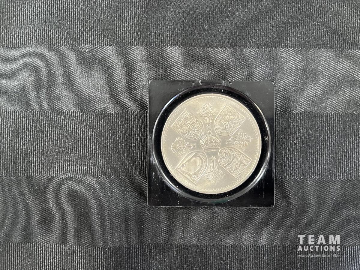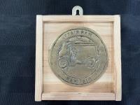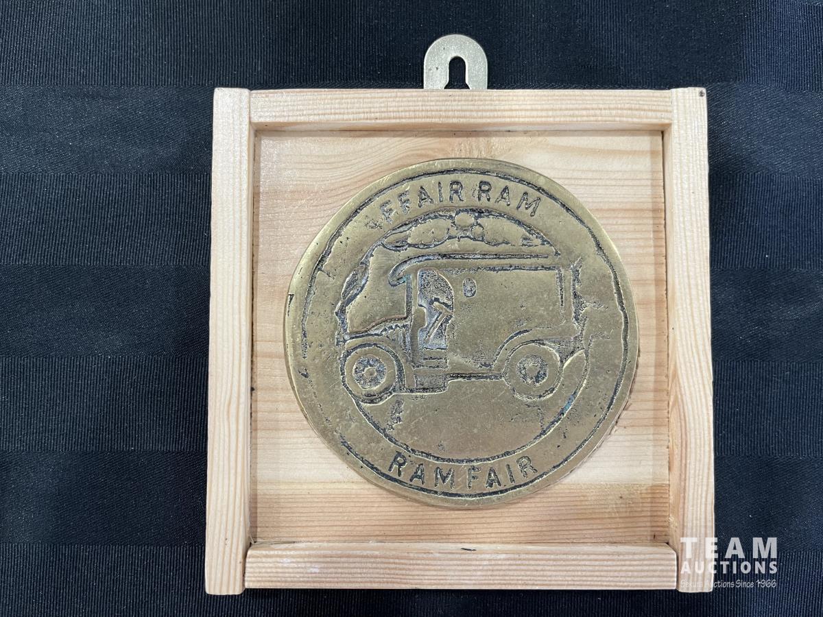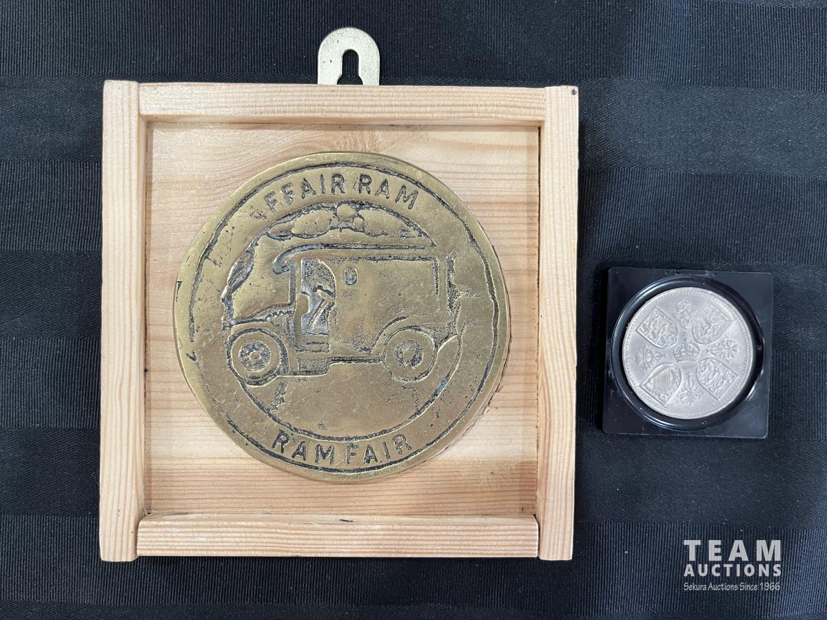 1223 Antique Brass Plaque w/ Collectible Five Shillings Coin