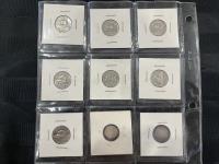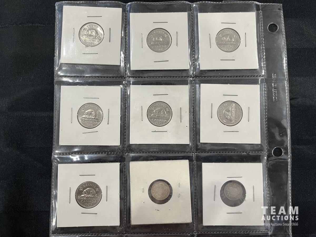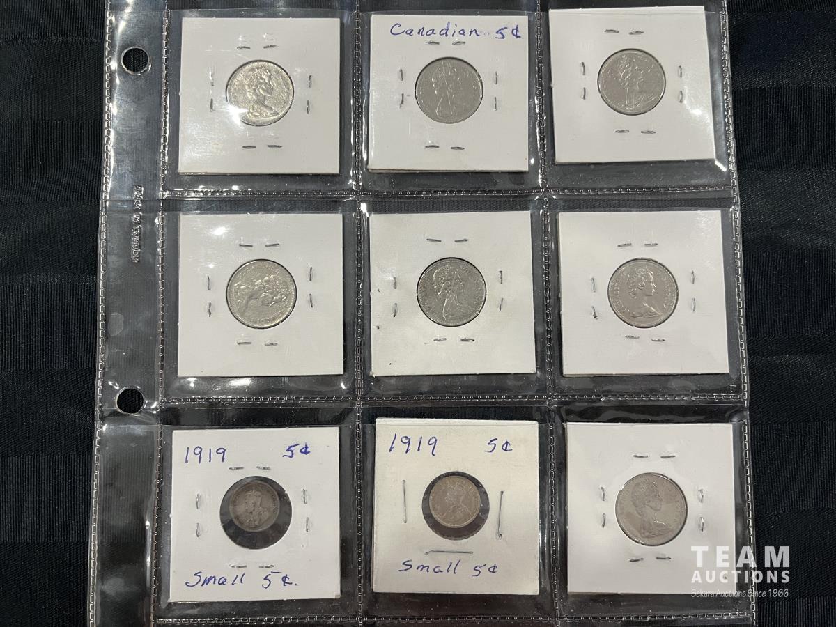 1965, 1966, 1968, 1969, 1971, 1973, 1980 Canadian Nickels. (2) 1919 small five cent coins.