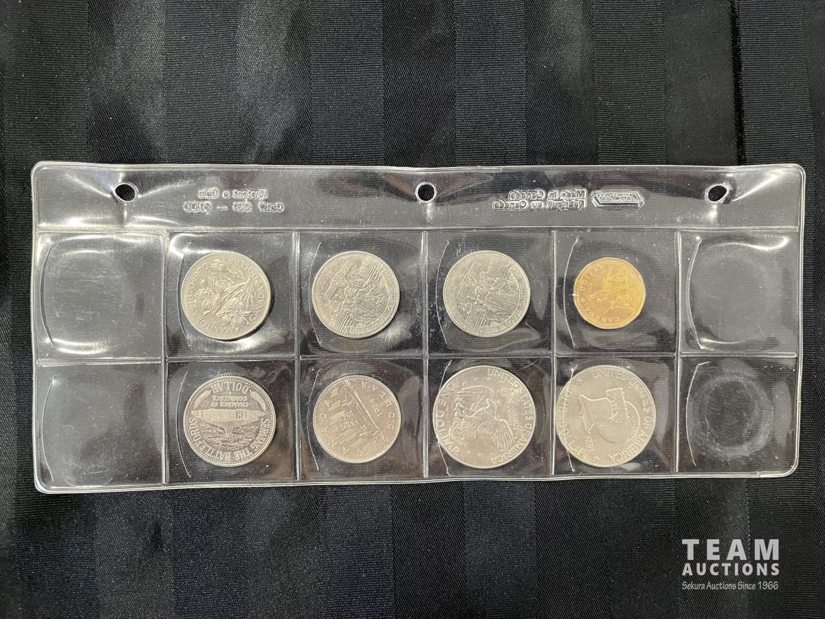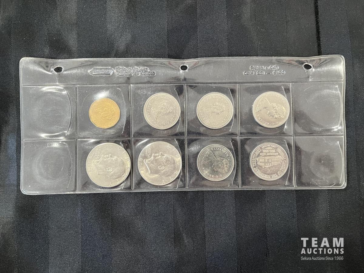 1870-1970 Manitoba Canadian Dollar, (2) 1984 Jacques Cartier Canadian Dollar, 1995 Canadian Dollar, 1876-1881 Chamber of Commerce Dollar Coin, 1984 Canadian Dollar, 1977 United States of America One Dollar, 1776-1976 United States of America One Dollar