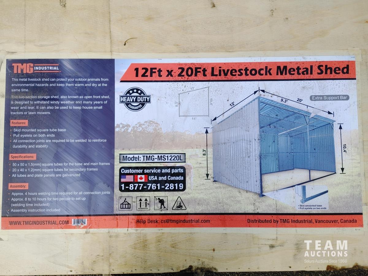 196 TMG Industrial MS1220L 12 Ft X 20 Ft Galvanized Metal Livestock Shed (Unused)