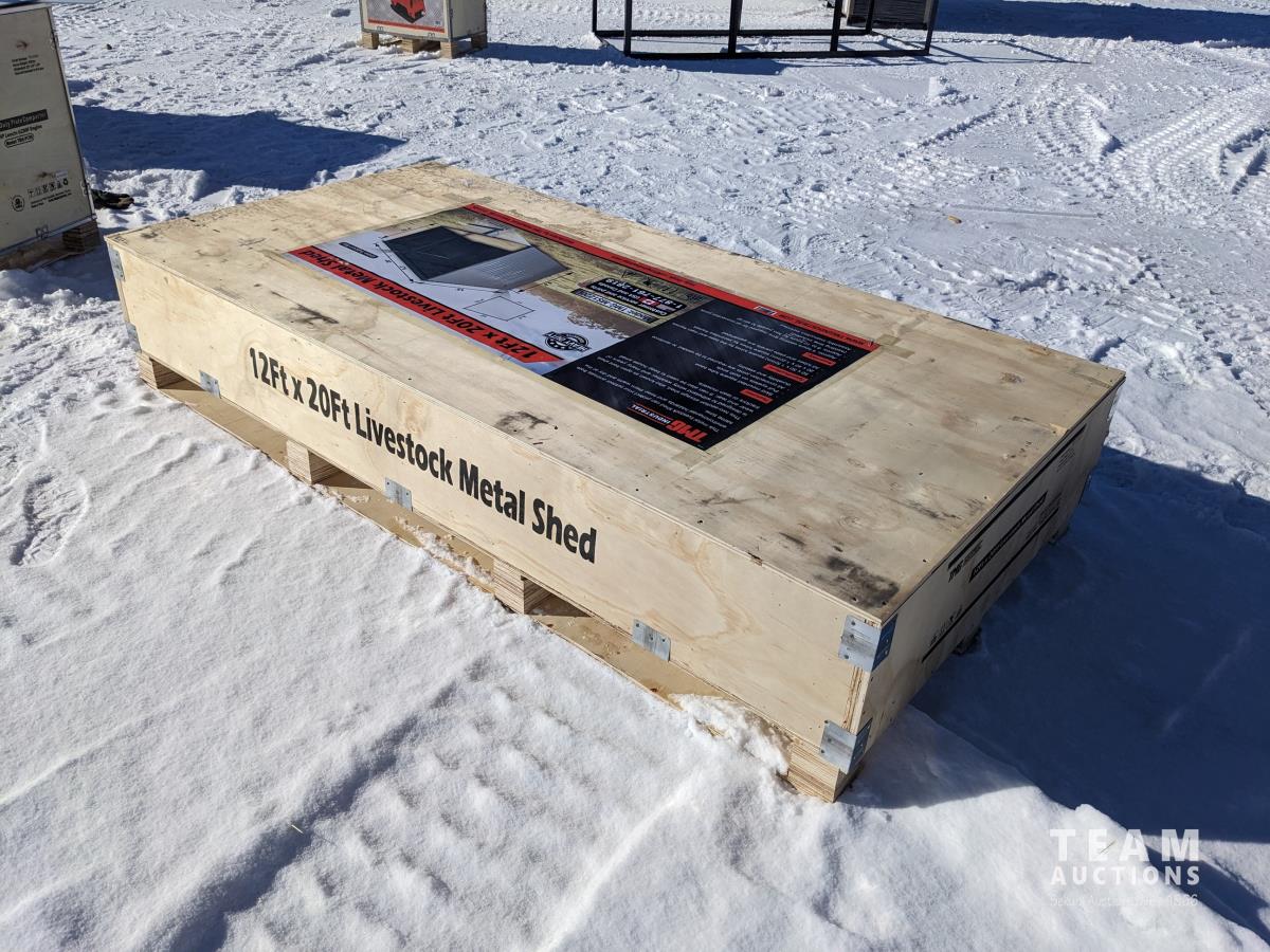 195 TMG Industrial MS1220L 12 Ft X 20 Ft Galvanized Metal Livestock Shed (Unused)