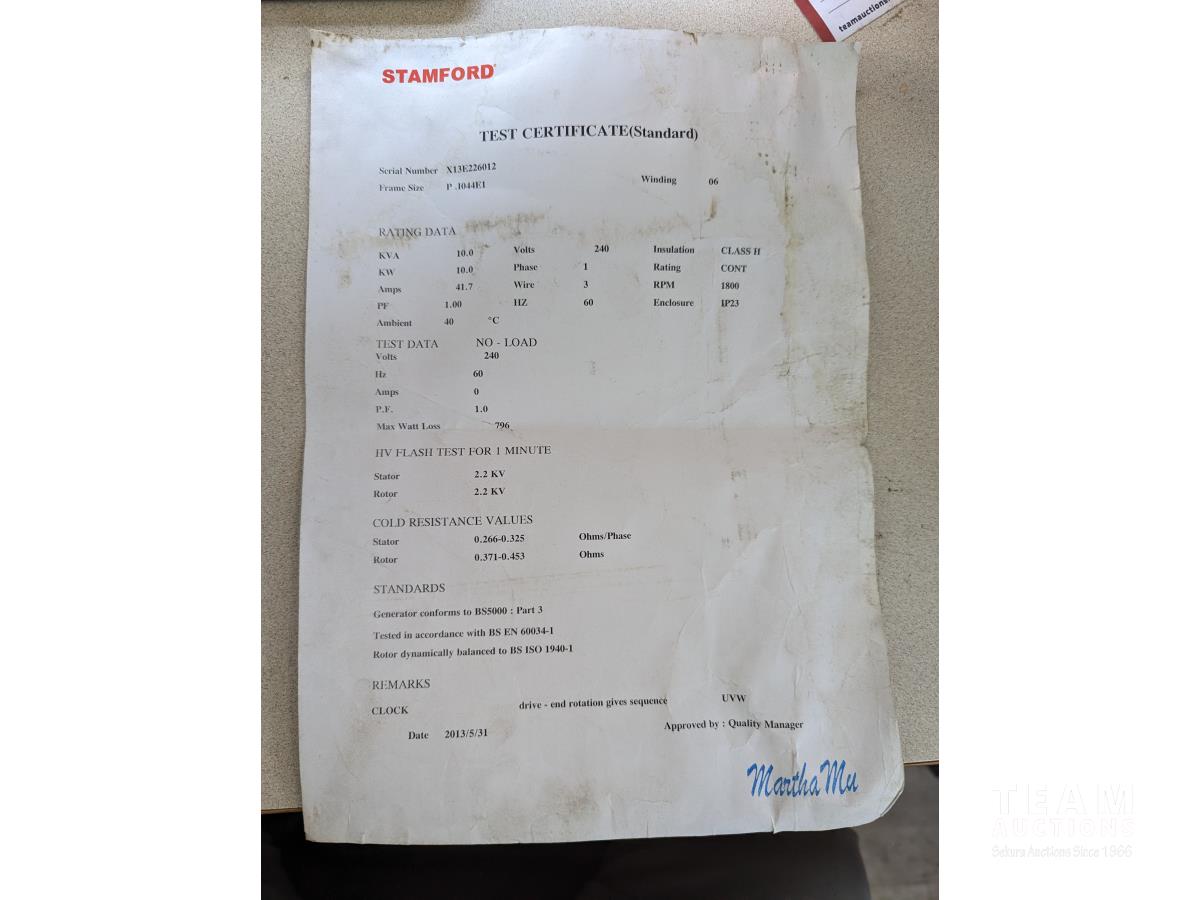 120/208 V, 3 ph, Kubota 3 cylinder diesel engine, ST205/75R15