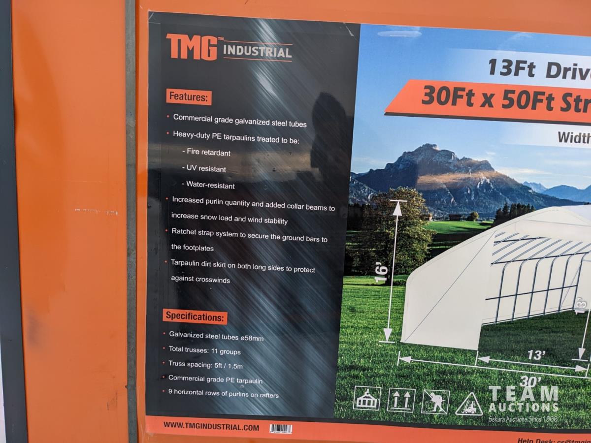 212 TMG Industrial ST3050 30 Ft X 50 Ft Peak Ceiling Storage Shelter (Unused)