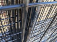 9 ft x 5 ft panels, 9 ft x 7 ft gate, mesh is 2.5 inch x 5 inch
