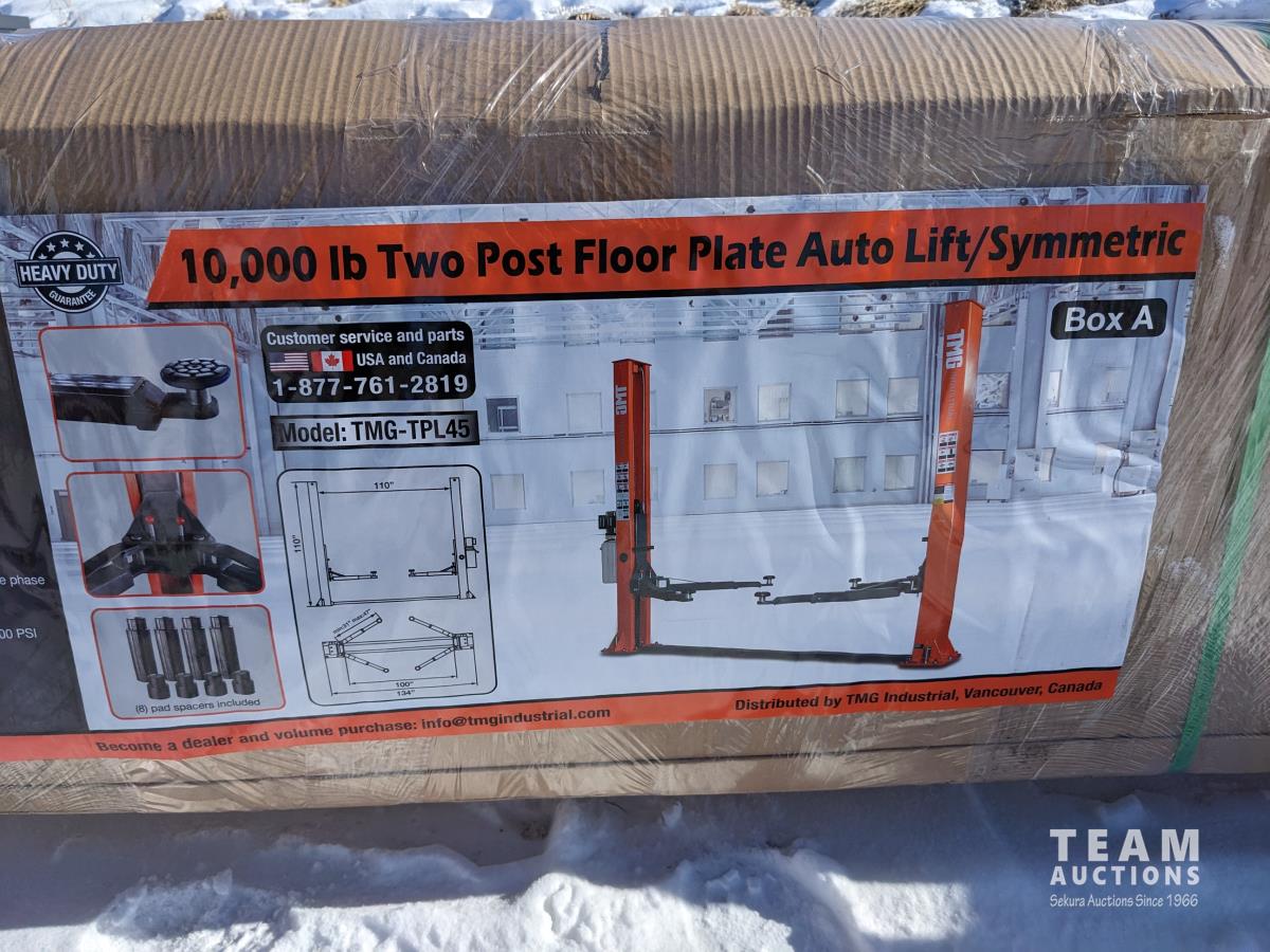 2568 TMG Industrial TMG-TPL45 10,000 lb Two Post Floor Plate Auto Lift (Unused)