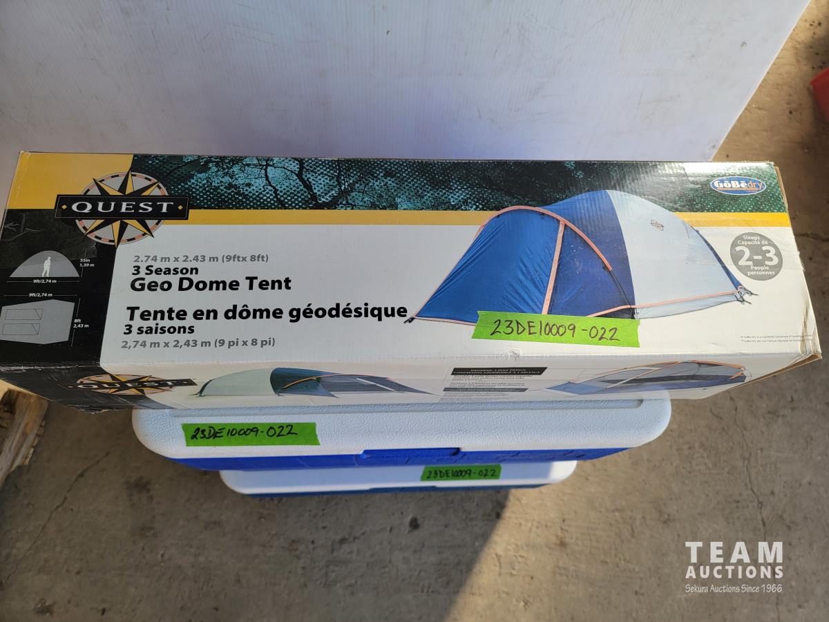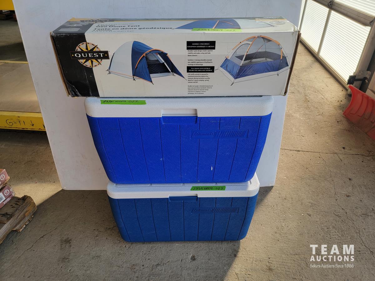 1169 (2) Coleman Coolers and Quest 3 Season Geo Dome Tent