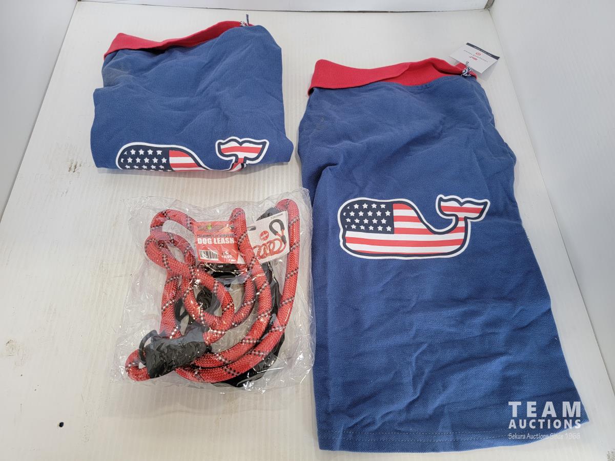 2029 (2) Medium Size Dog Shirts and Leash (Unused)