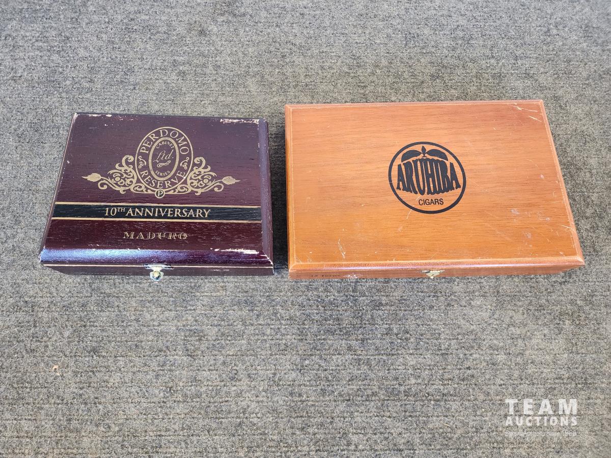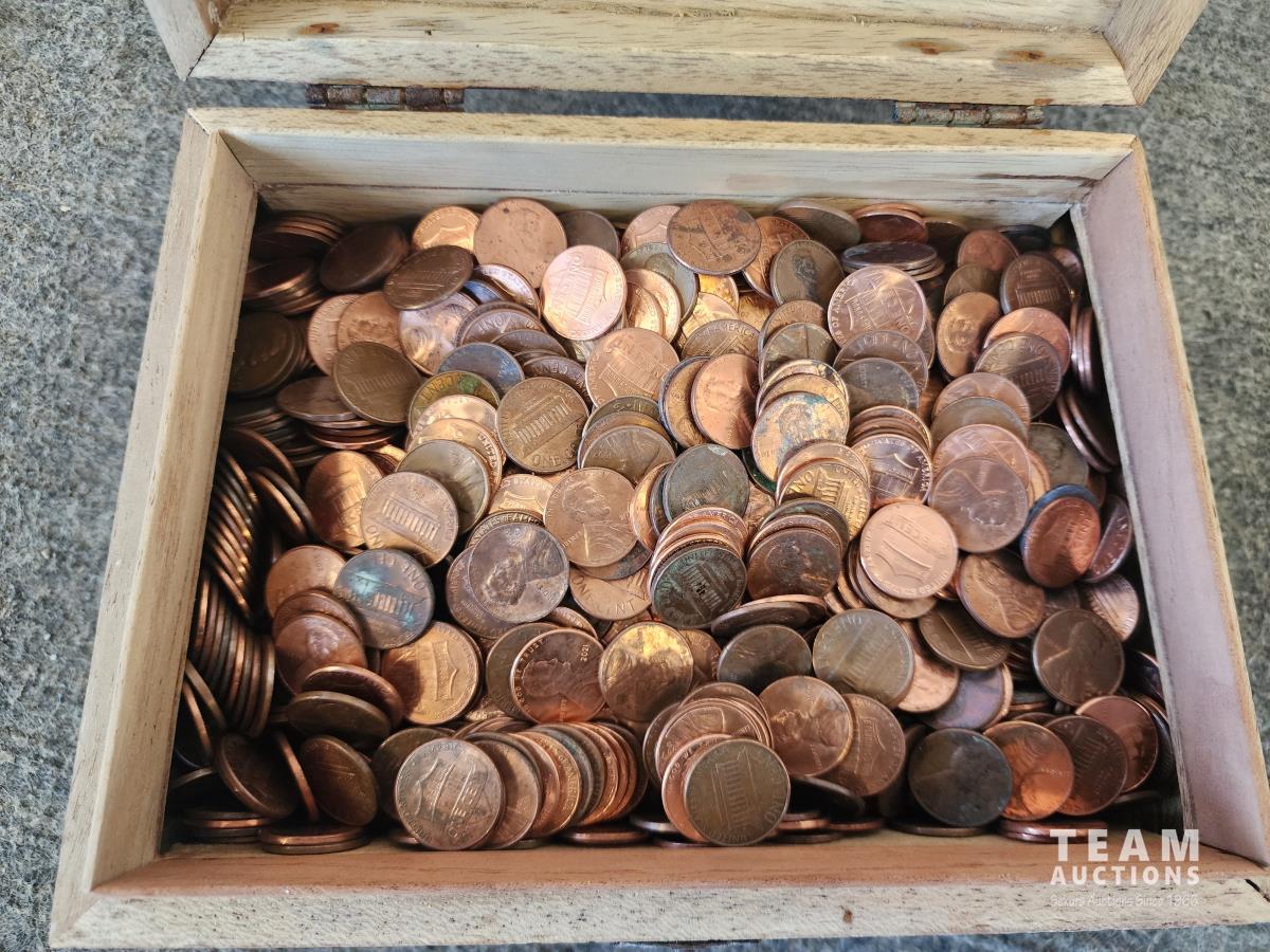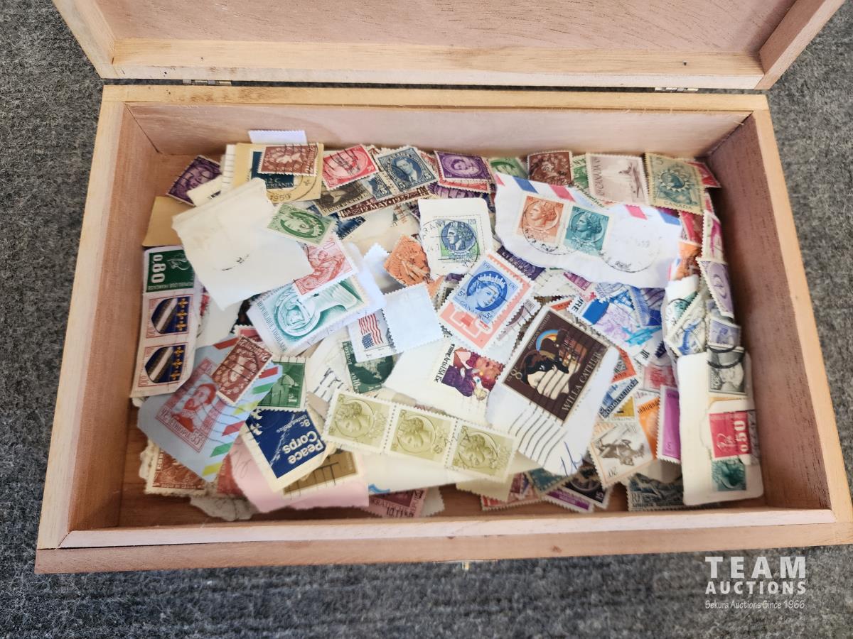 2272 (2) Vintage Cigar Boxes with Pennies and Stamps