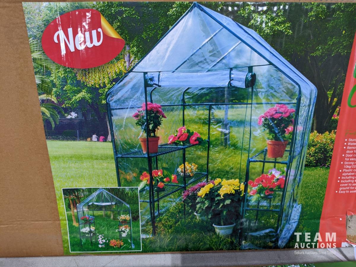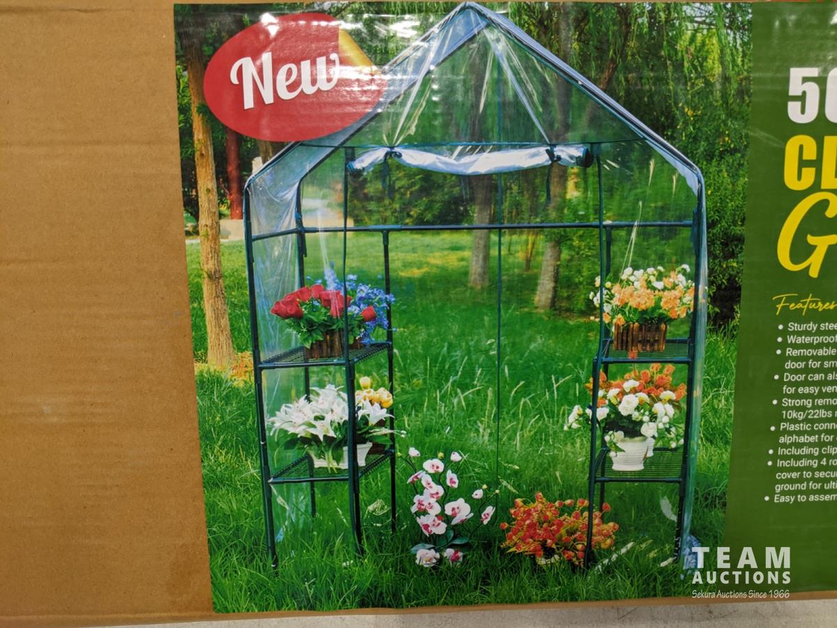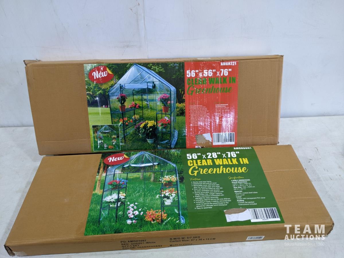 2118 (2) Walk in Clear Roll-Up Greenhouse with Shelves (Unused)