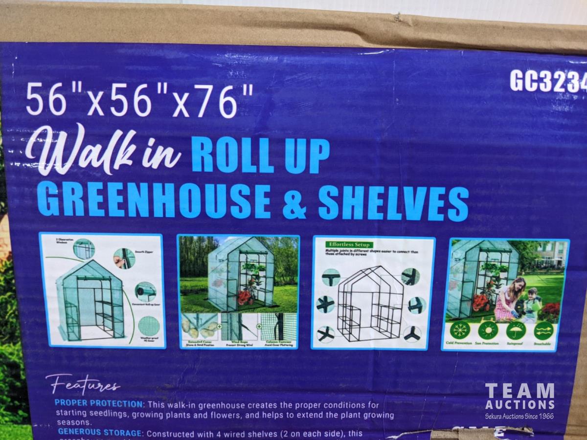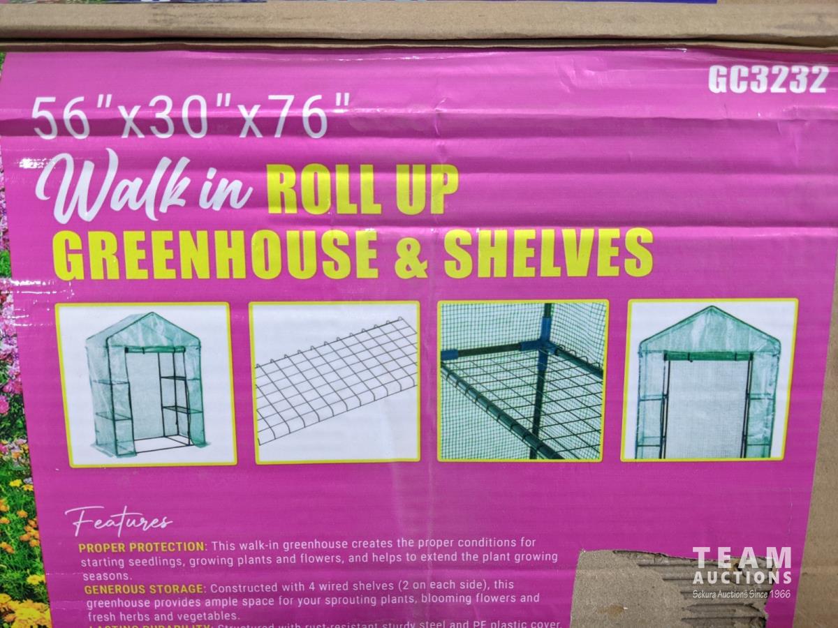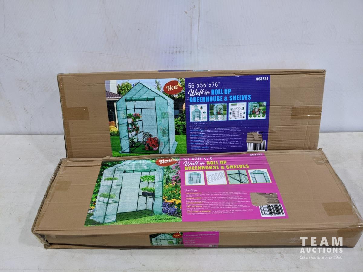 2119 (2) Walk in Roll-Up Greenhouse with Shelves (Unused)