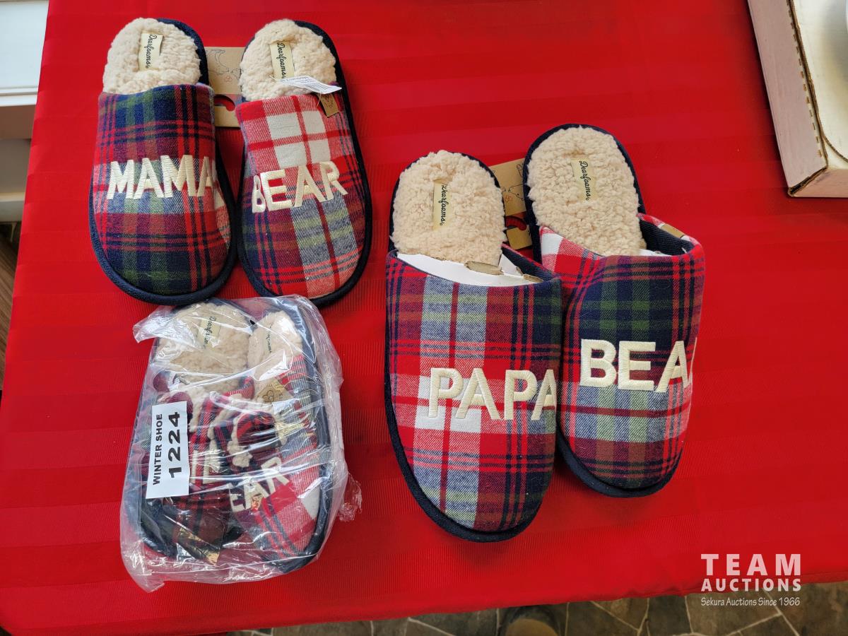 1809 (3) Pieces Matching Family Bear Slippers Men's, Women's and Toddler Slipper (Unused)