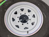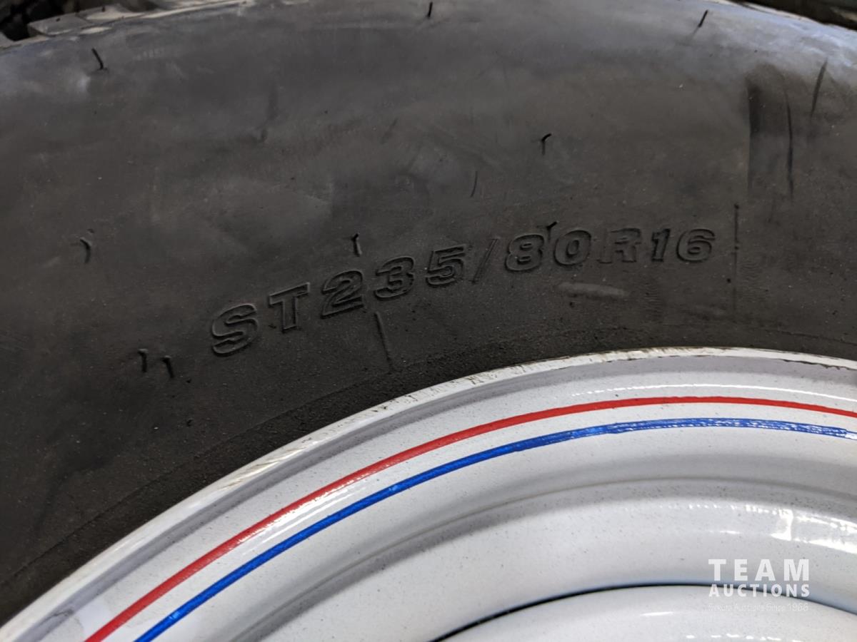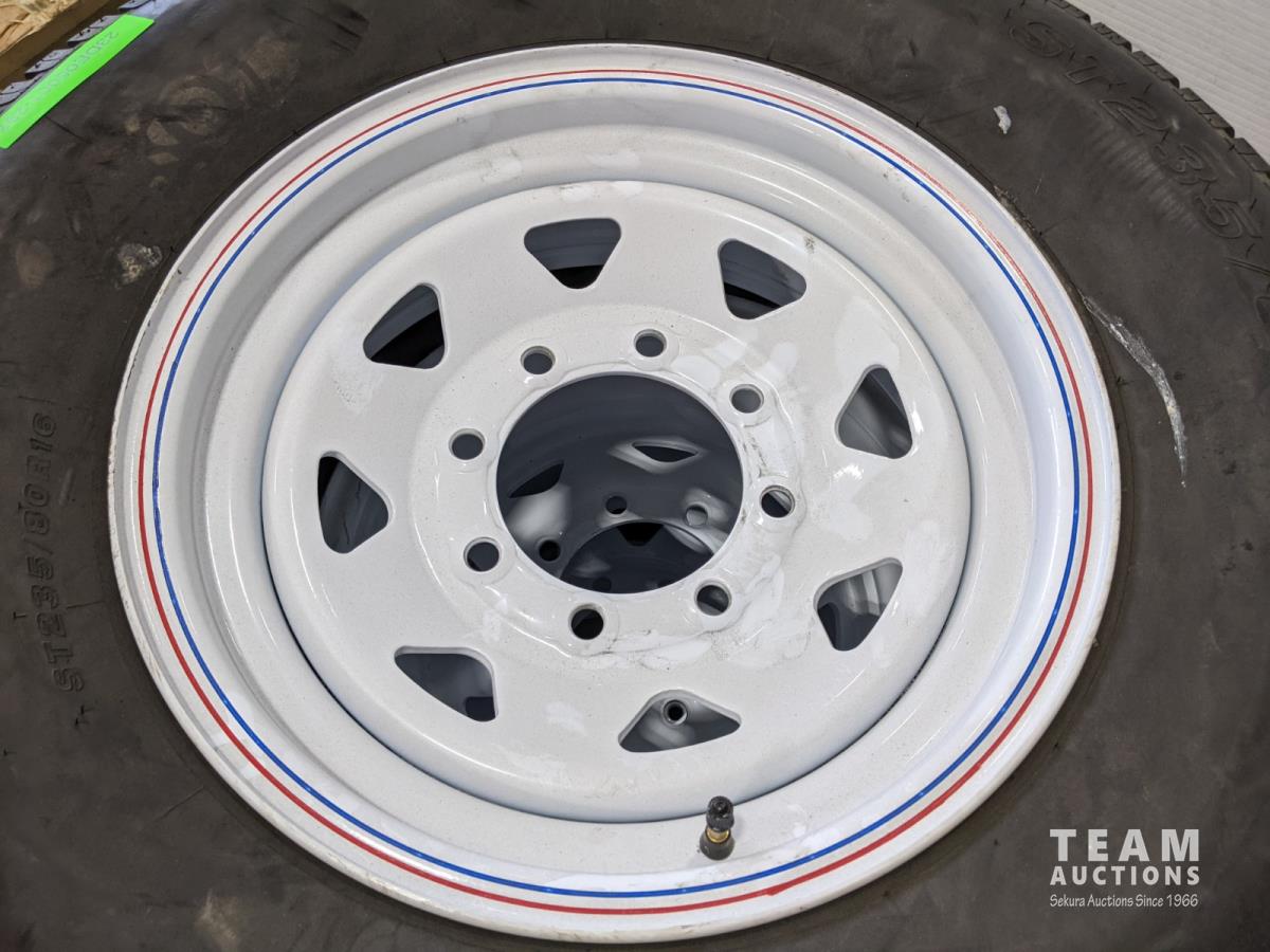 1689 (4) 235/80R16 Trailer Tires On 8 Bolt Wheels (Unused)