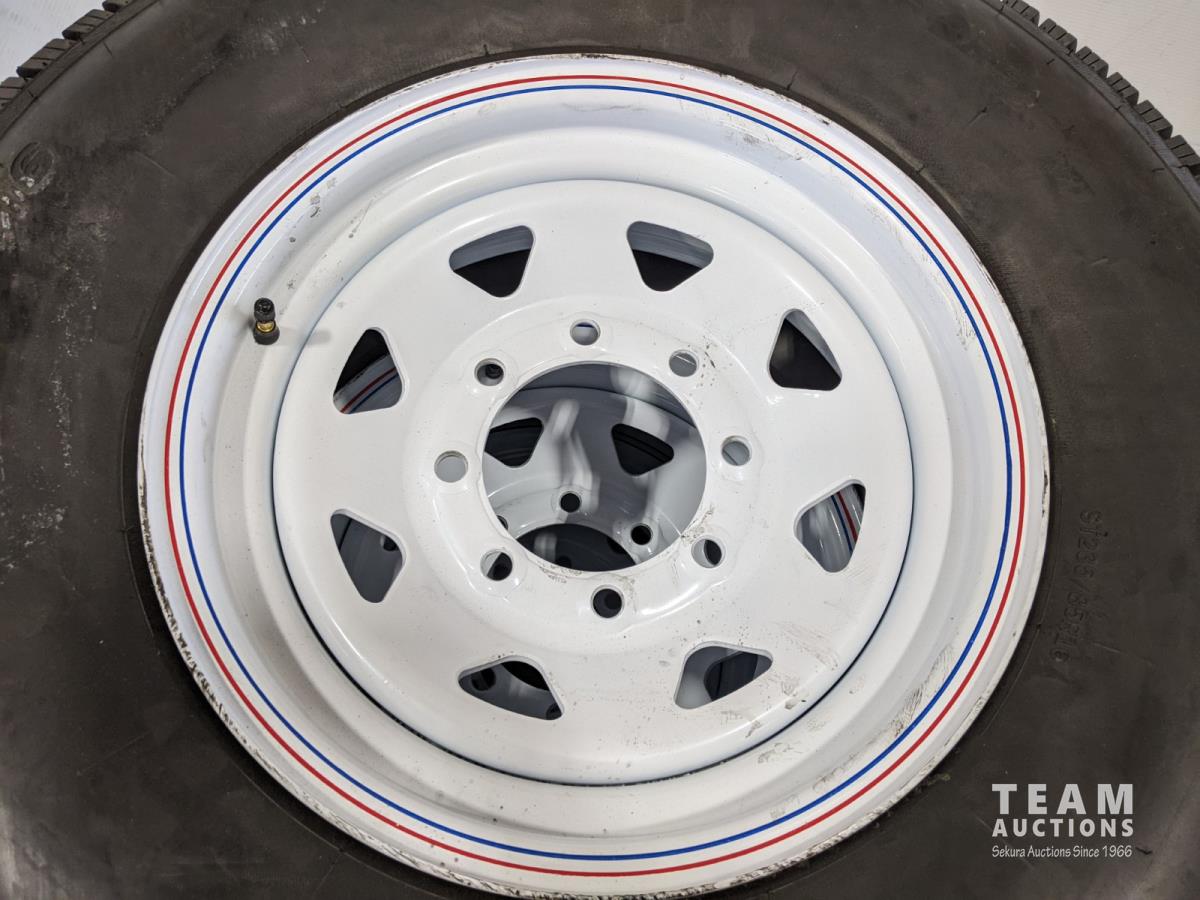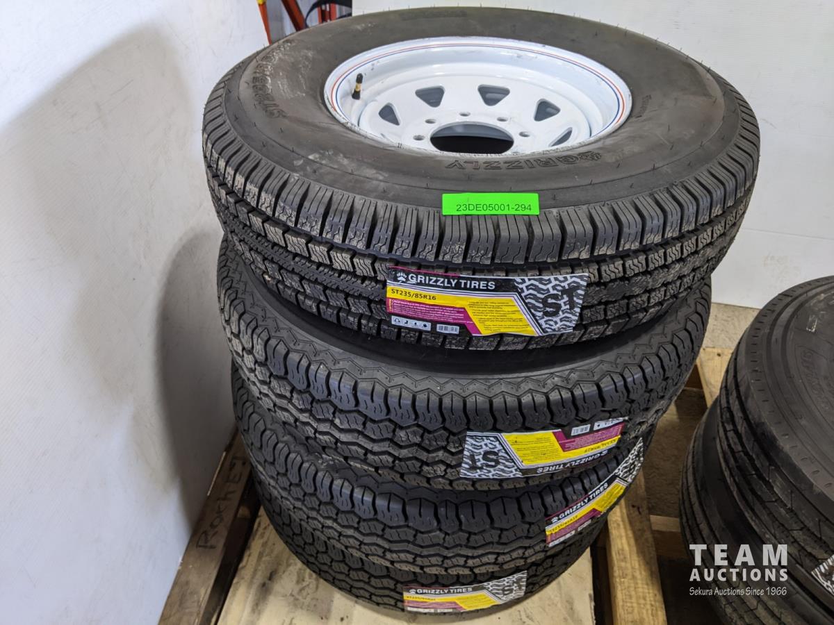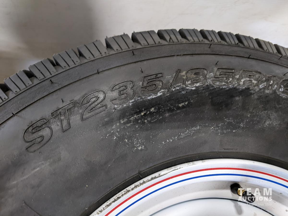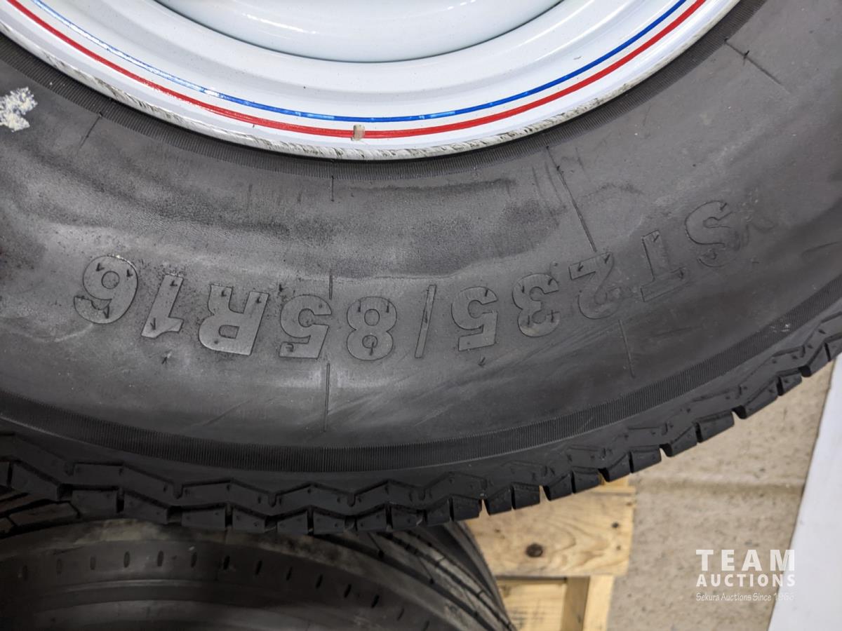 1686 (4) 235/85R16 Trailer Tires On 8 Bolt Wheels (Unused)
