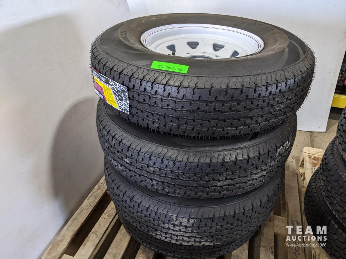 1687 (4) 235/85R16 Trailer Tires On 8 Bolt Wheels (Unused)