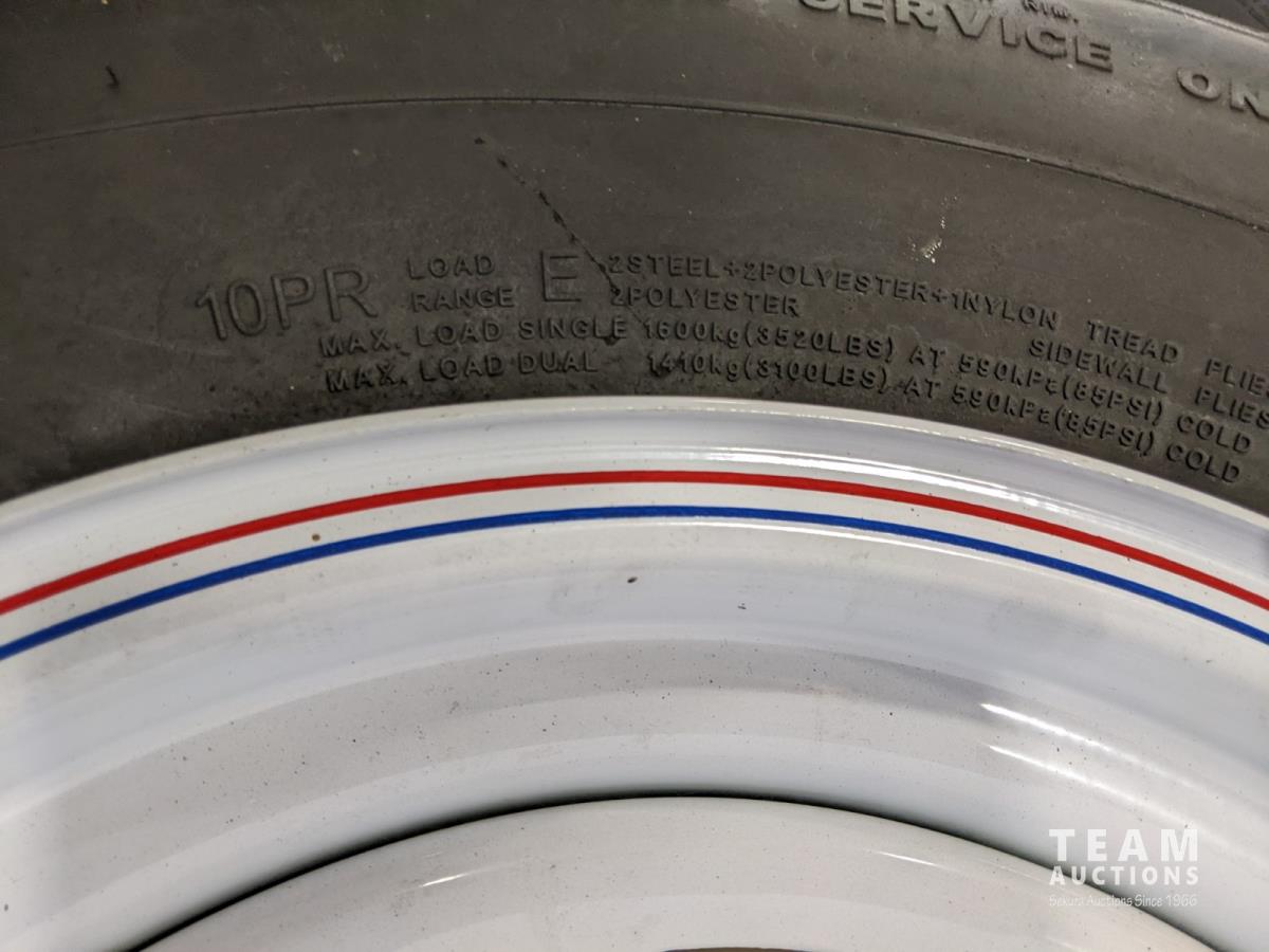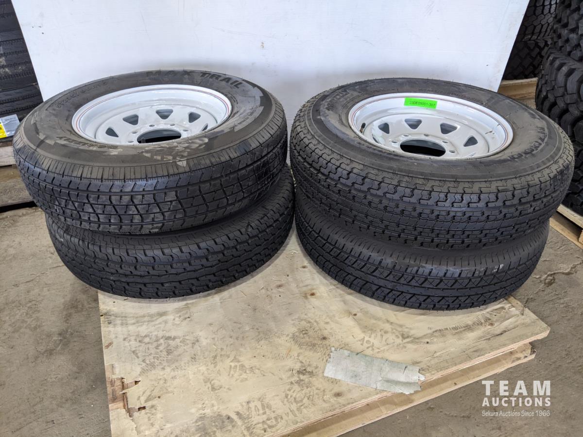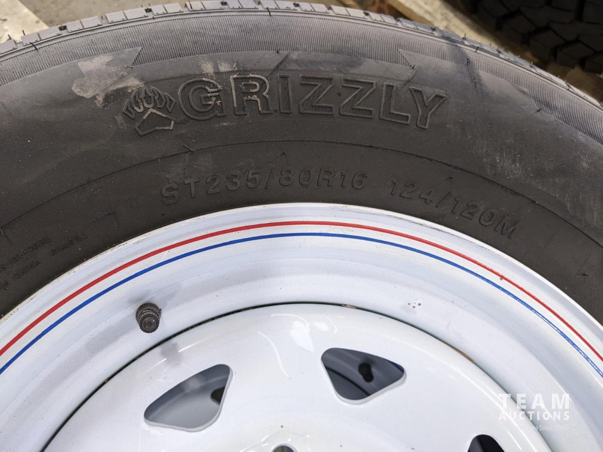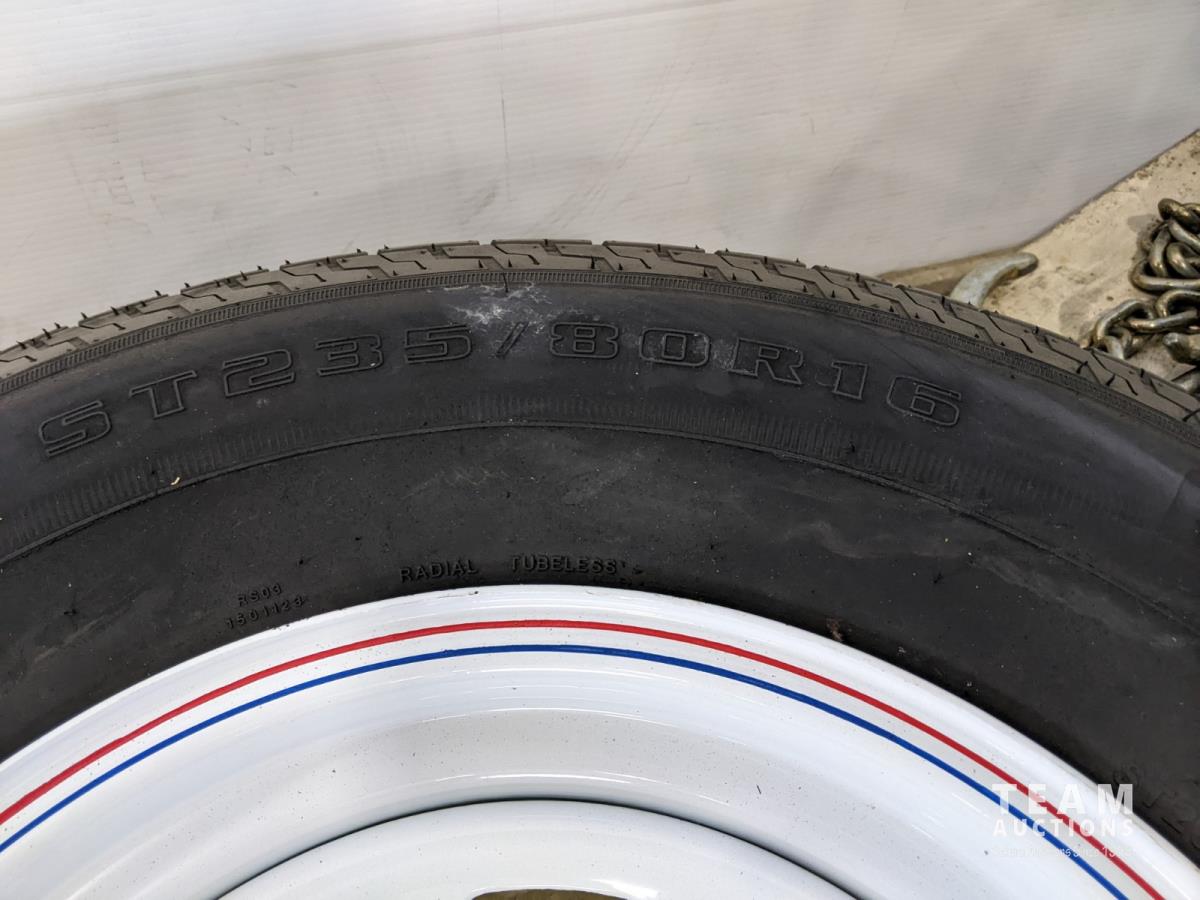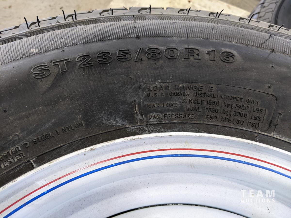 1745 (4) ST235/80R16 Trailer Tires On 8 Bolt Wheels (Unused)