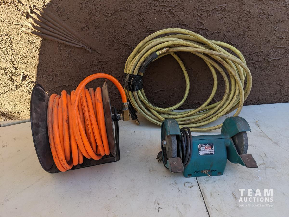 2129 Air Hose with Reel, Air Hose & Small B&D Bench Grinder