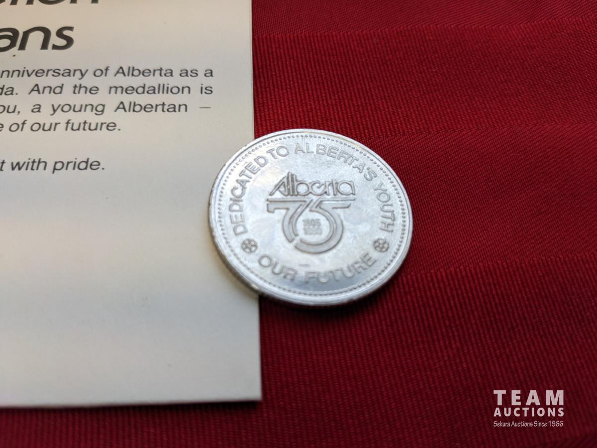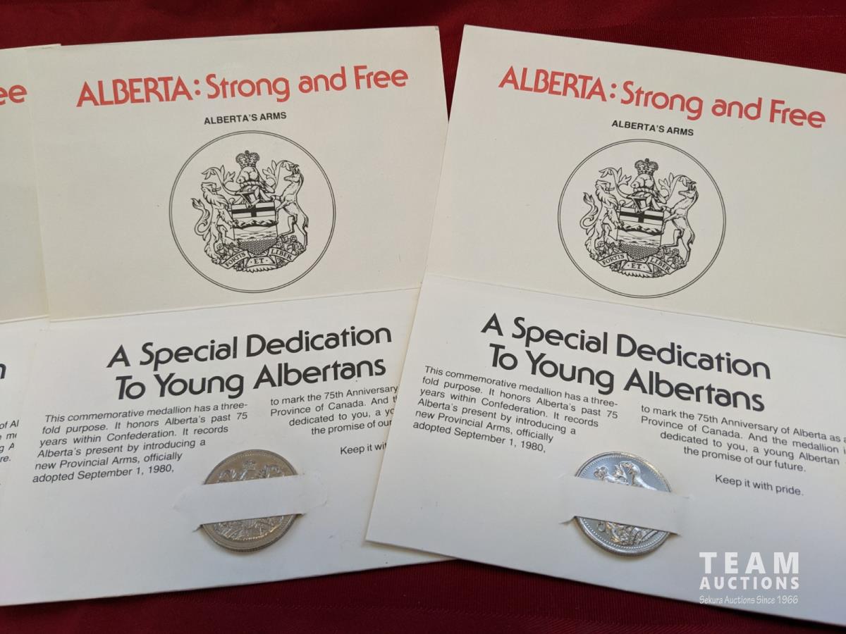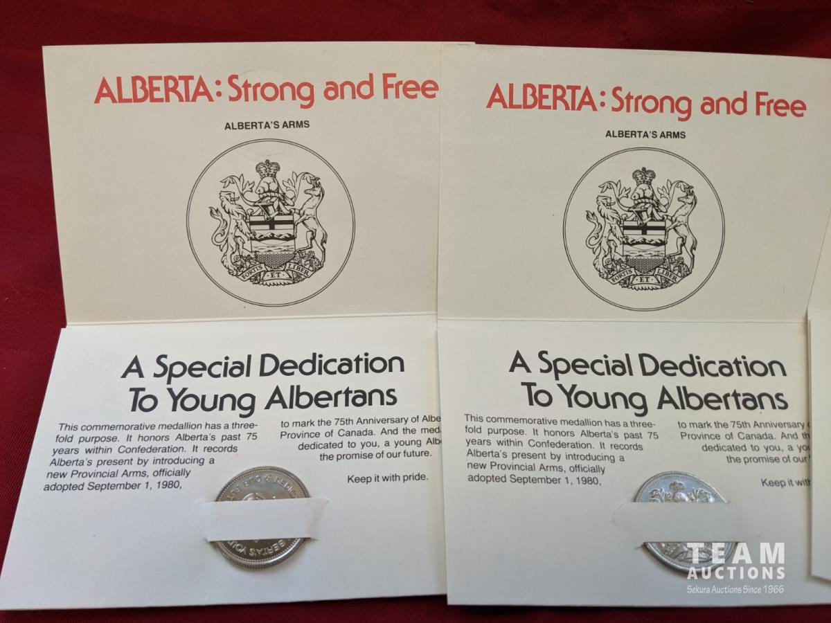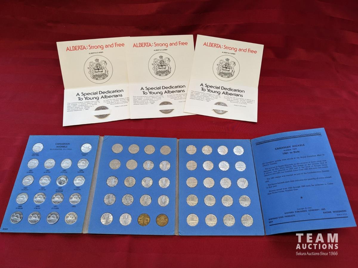 (3) ALBERTA: Strong and Free medallions, (58) Canadian nickels in booklet