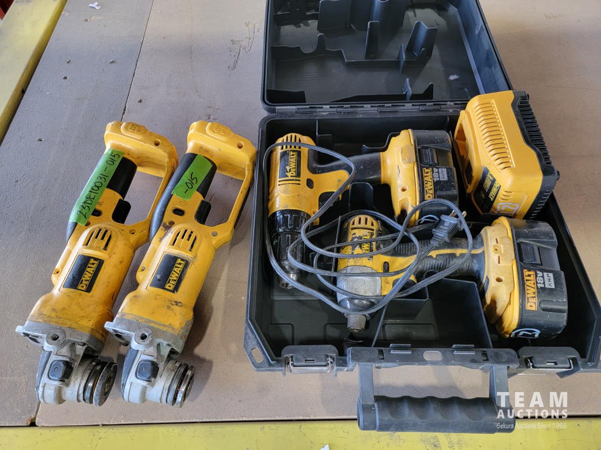 2082 DeWalt Cordless Impact, Drill and (2) Angle Grinders