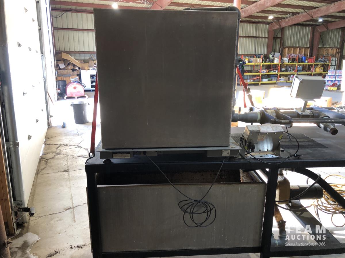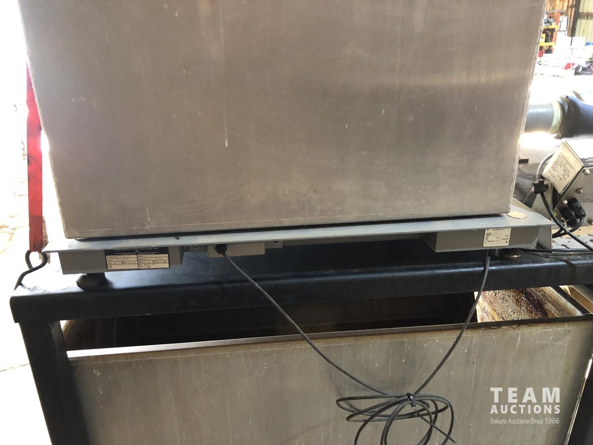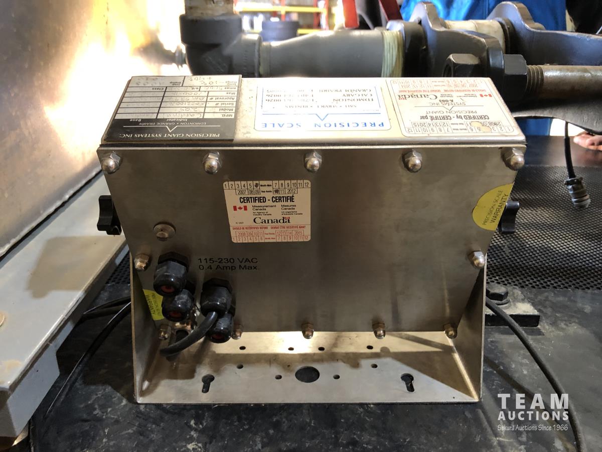 1000 kg scale/display, 1-1/2 HP, 230 VAC pump, 3 ft d x 9 ft l x 7 ft h, powder coated, mounted totalizar