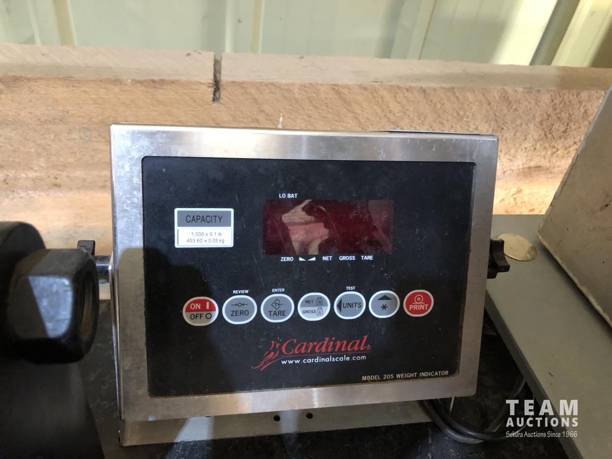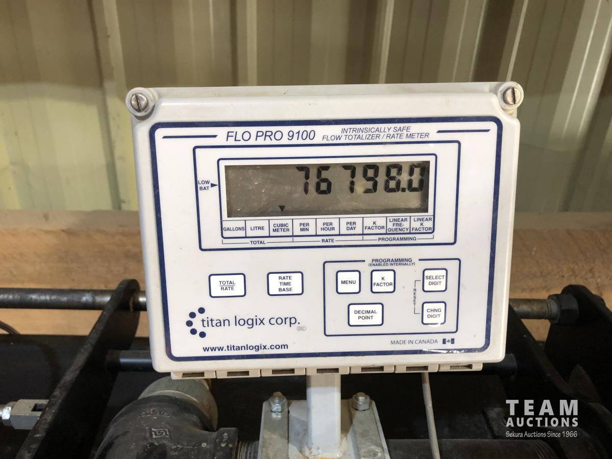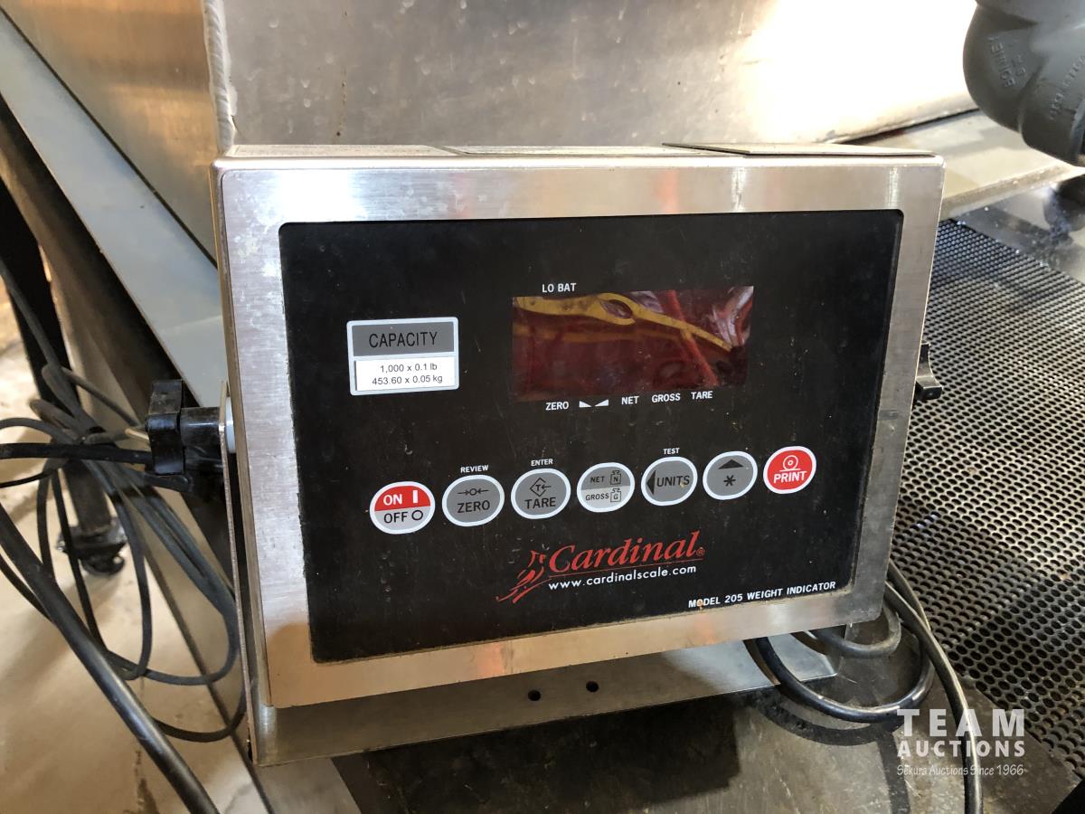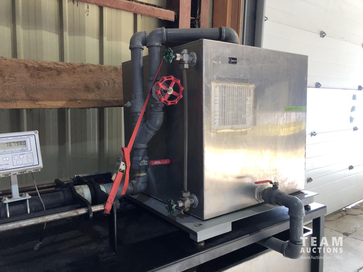 1000 kg scale/display, 1-1/2 HP, 230 VAC pump, 3 ft d x 9 ft l x 7 ft h, powder coated, mounted totalizar