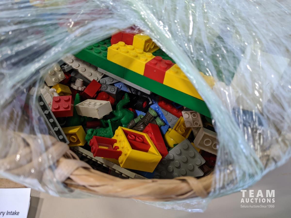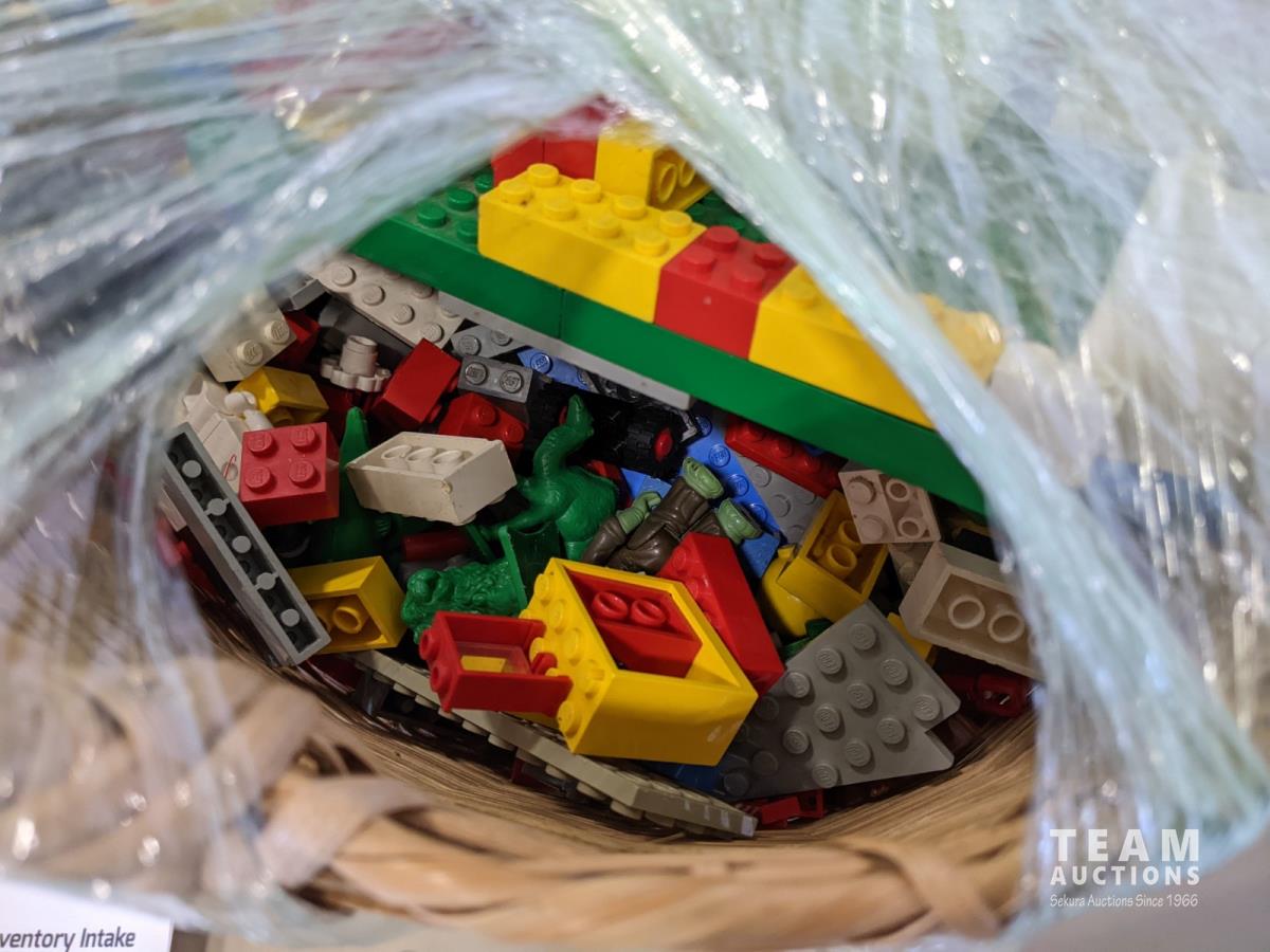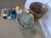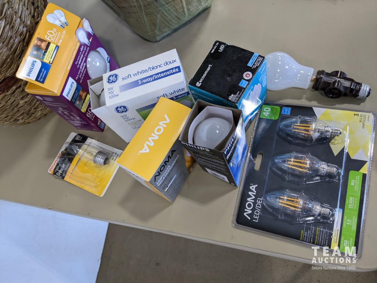 Folding table, basket of lego, qty of light bulbs and (4) folding chairs