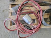 30 x 40 blue tarp (new), (2) air paint sprayers and saw mandrel with belt