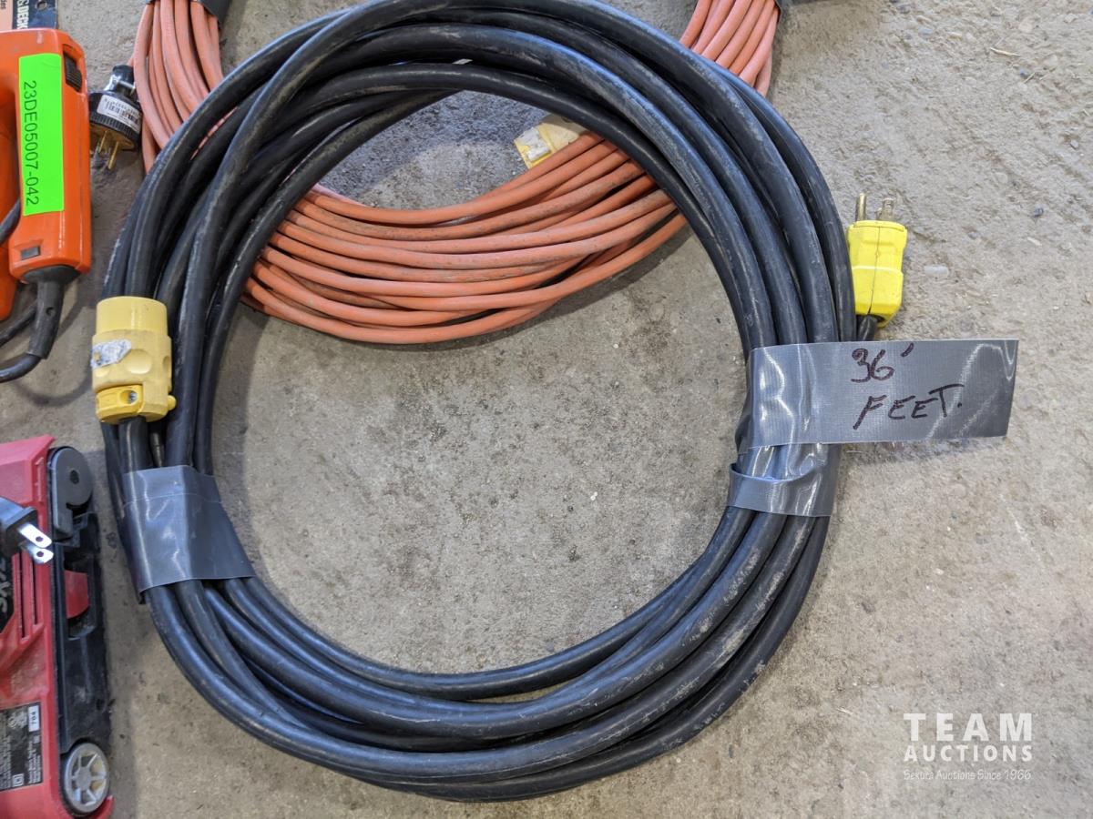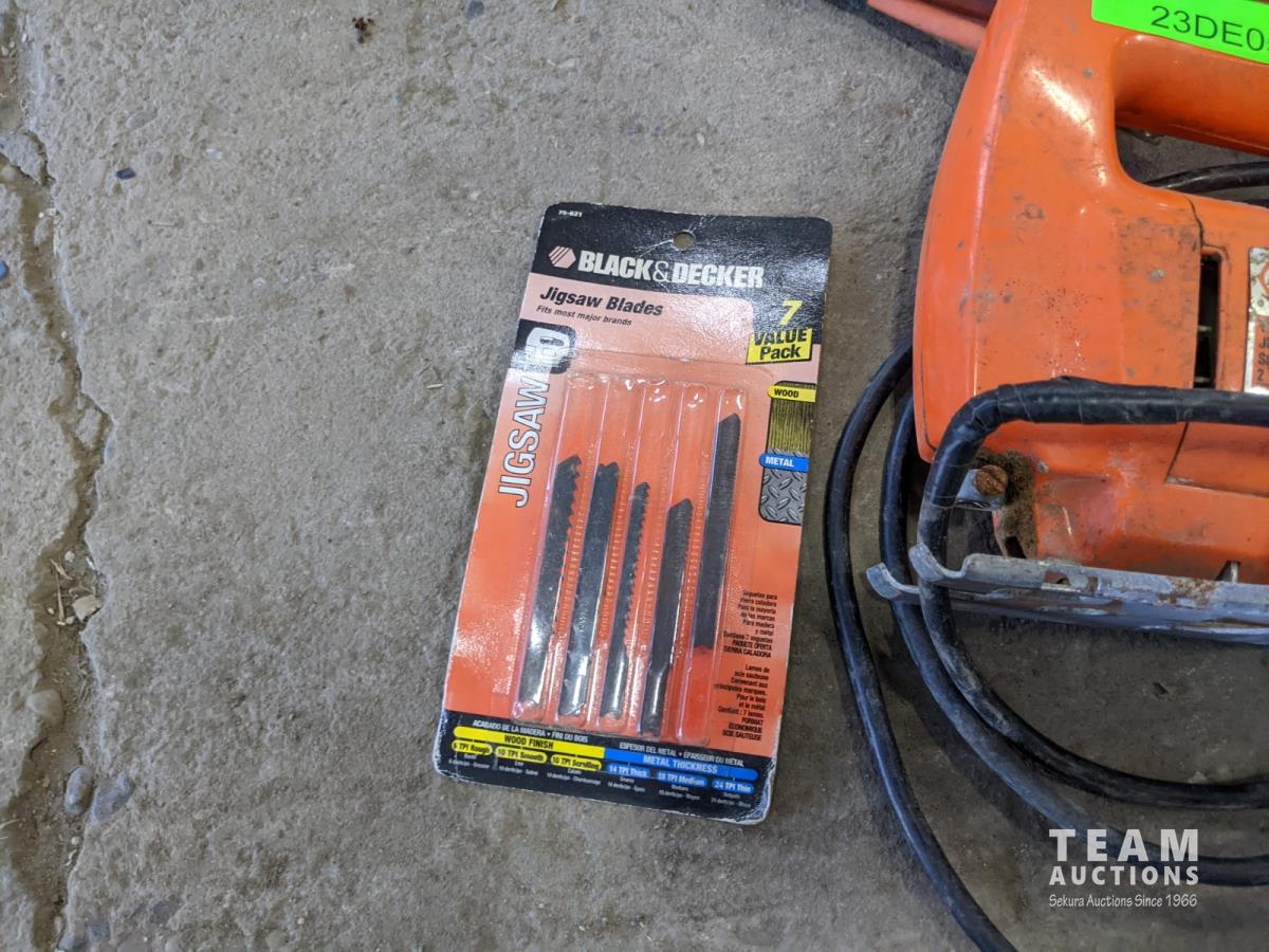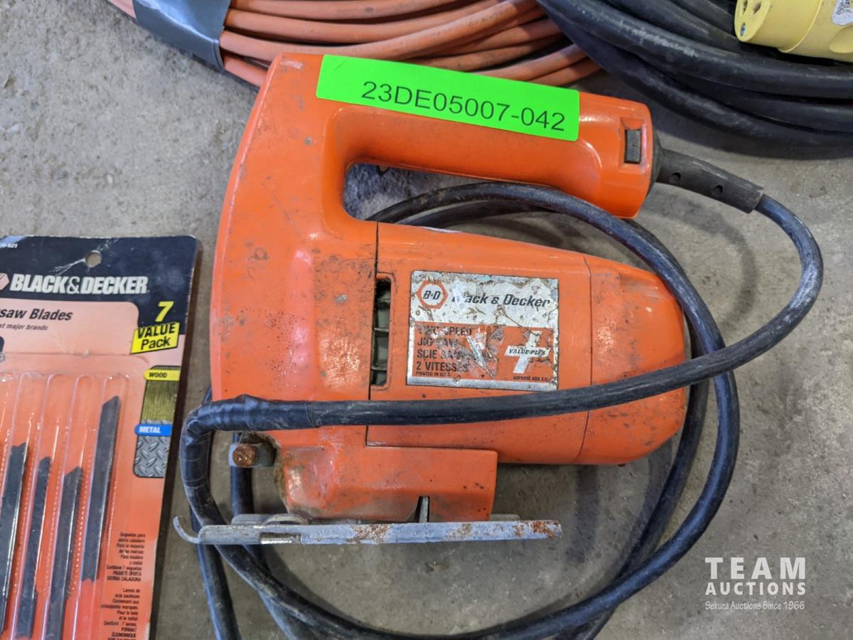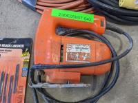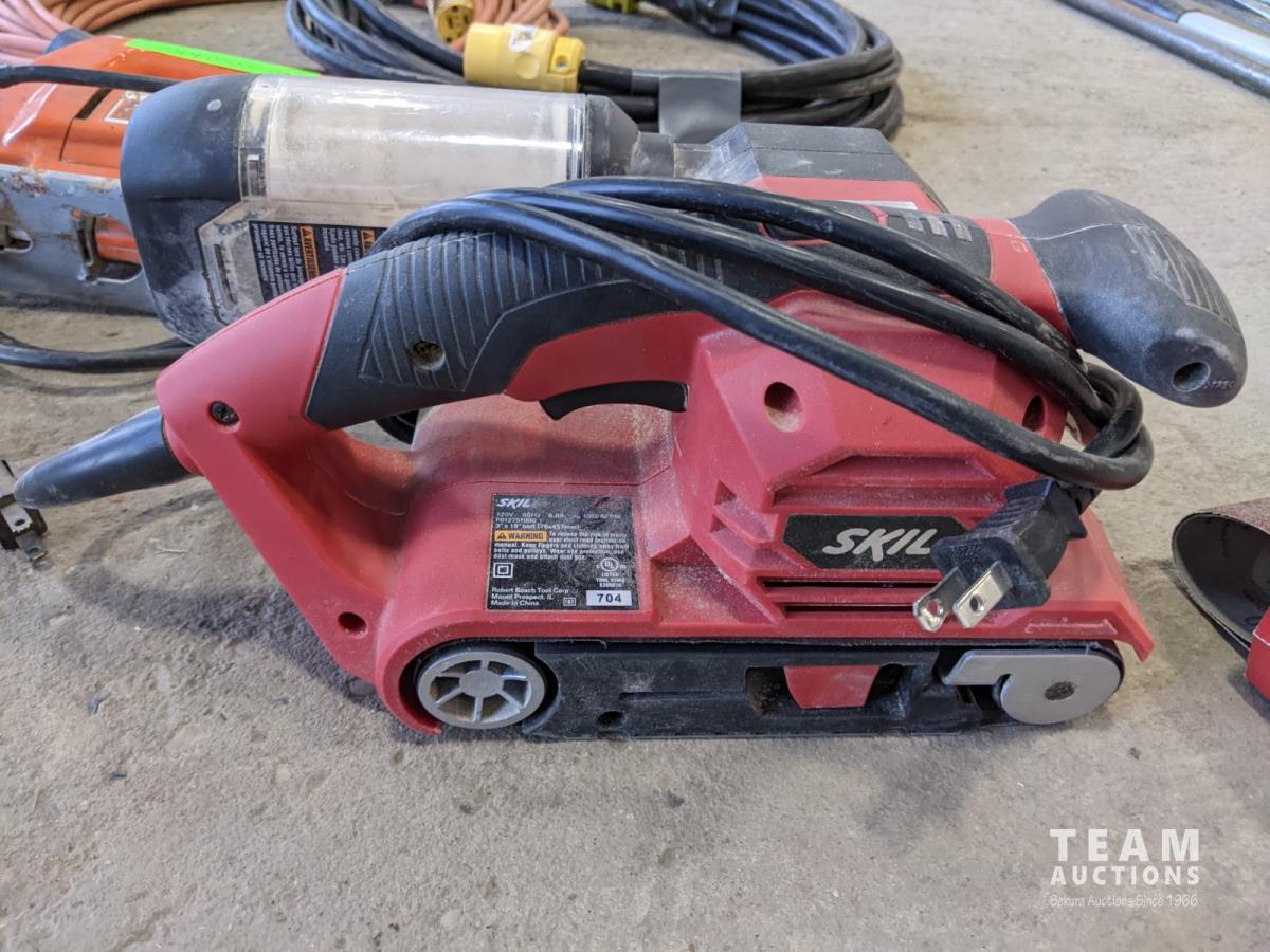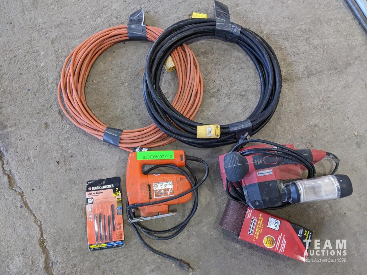 Skil belt sander with micro filtration and belts, Black & Decker jig saw with blades, extension cords