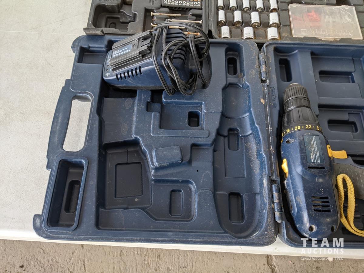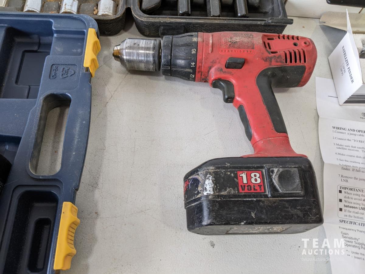 Jobmate tool kit, Mastercraft 12v drill (untested), Milwaukee 18v drill (untested) satellite finder