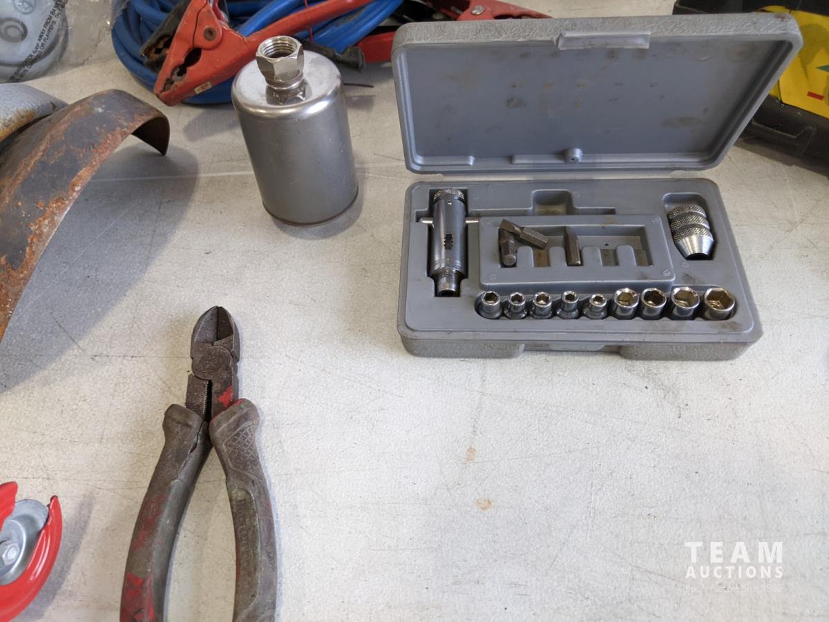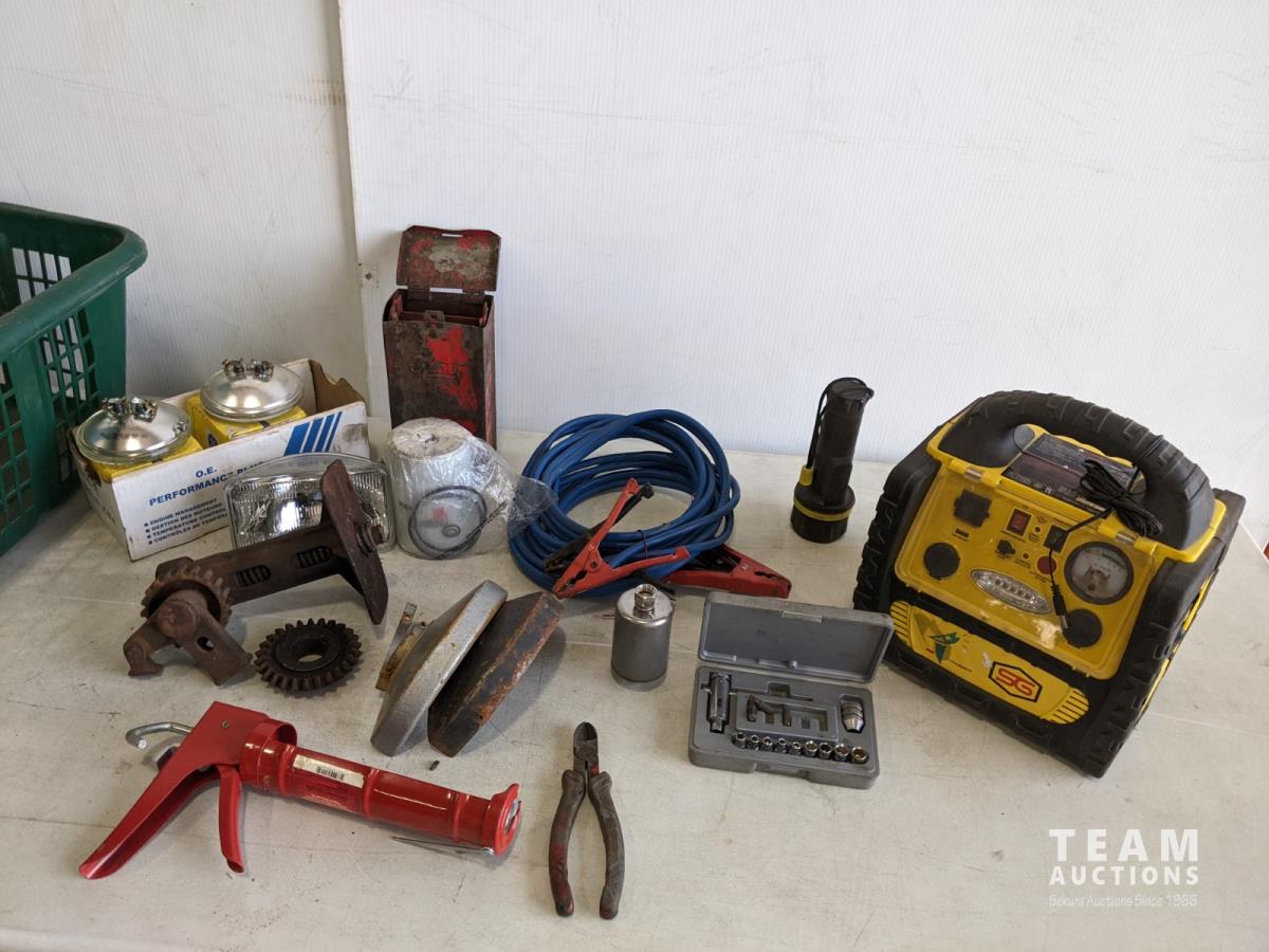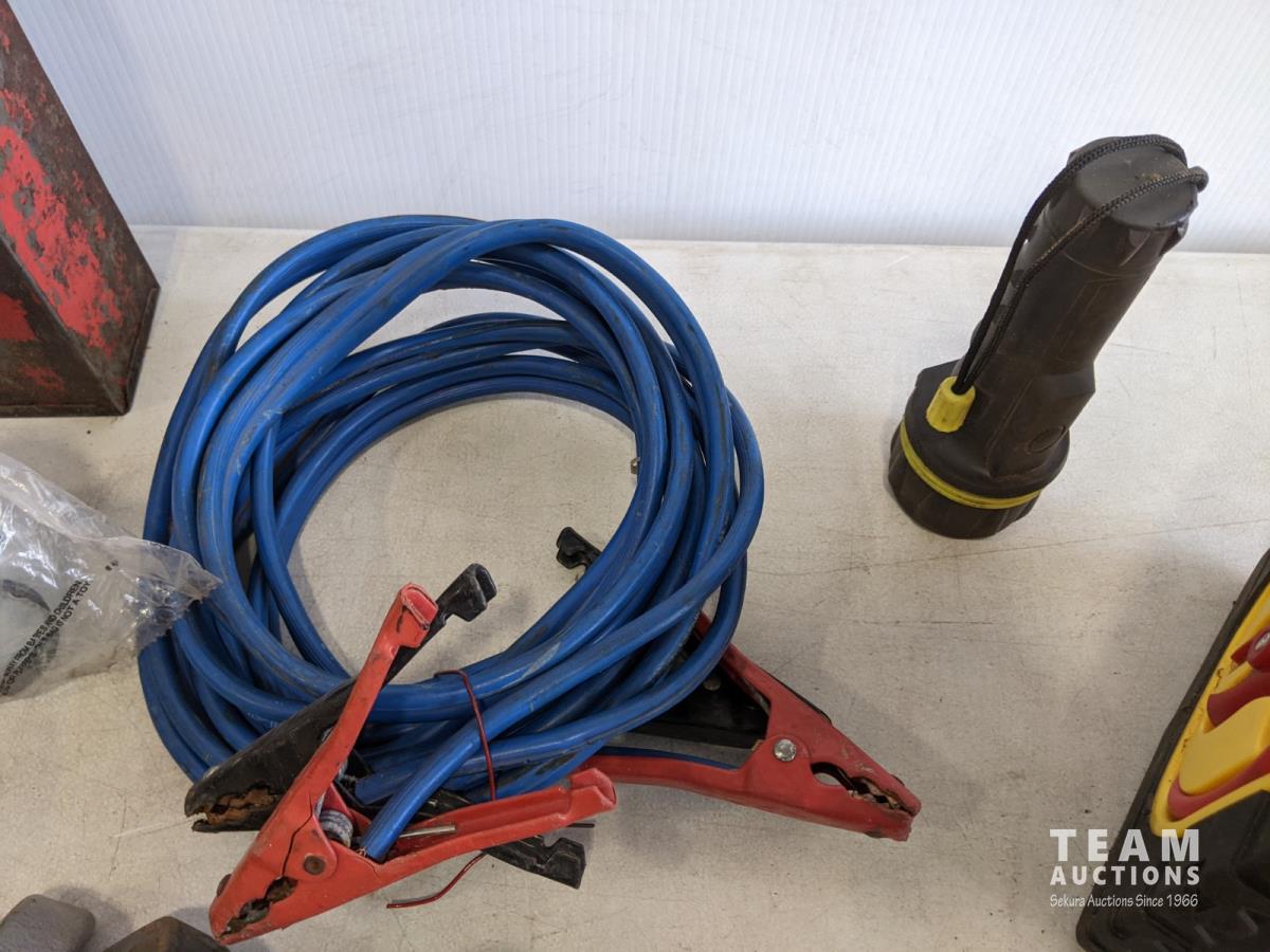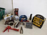 Booster cables, battery pack, miscellaneous vechile items, grease gun