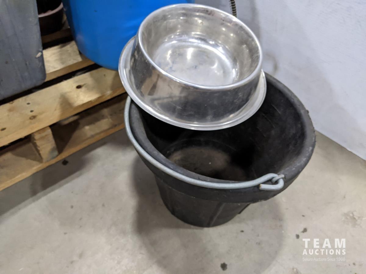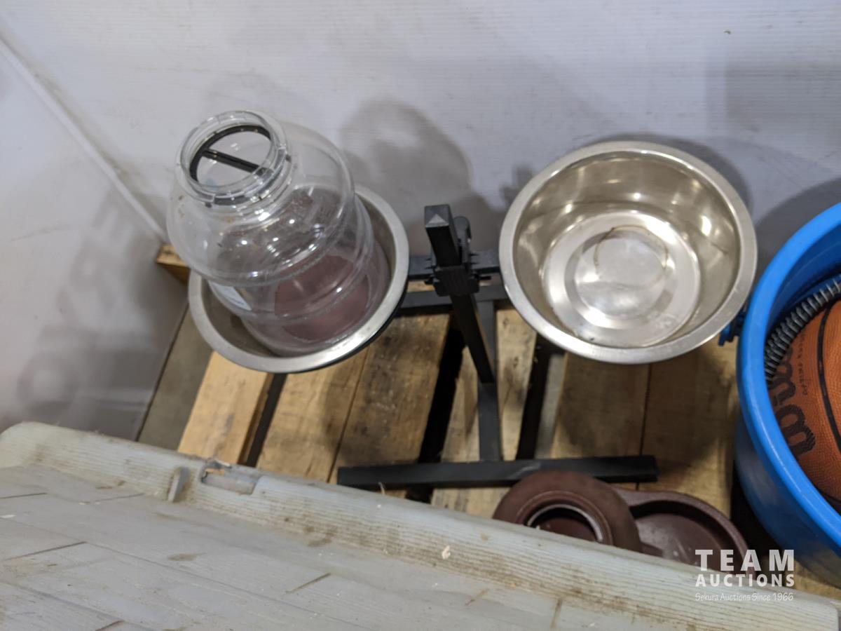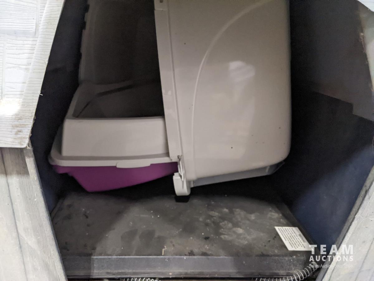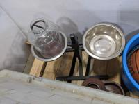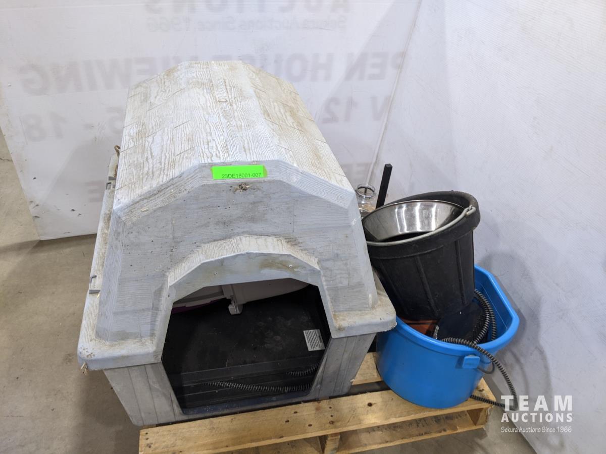 food dishes, dog house, heating mat, food buckets