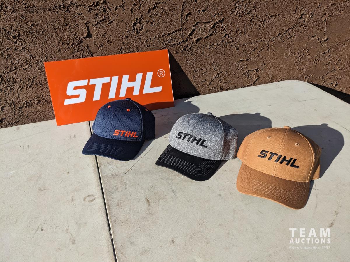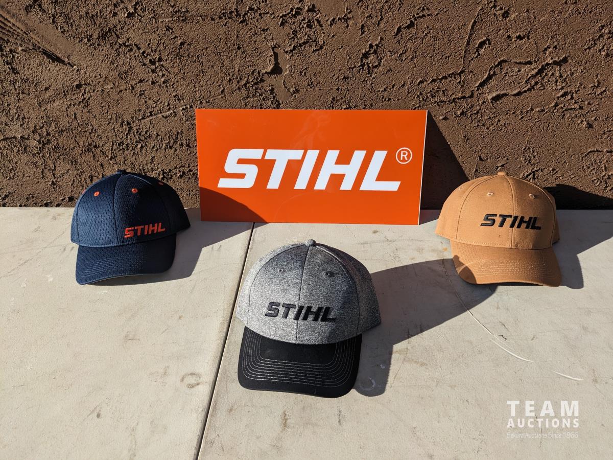 2130 Small Stihl Sign & (3) Stihl Hats (Unused)