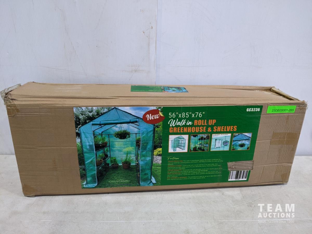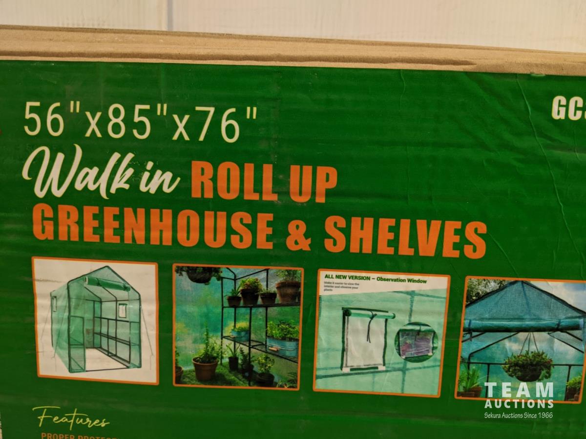 2117 Walk in Roll-Up Greenhouse with Shelves (Unused)