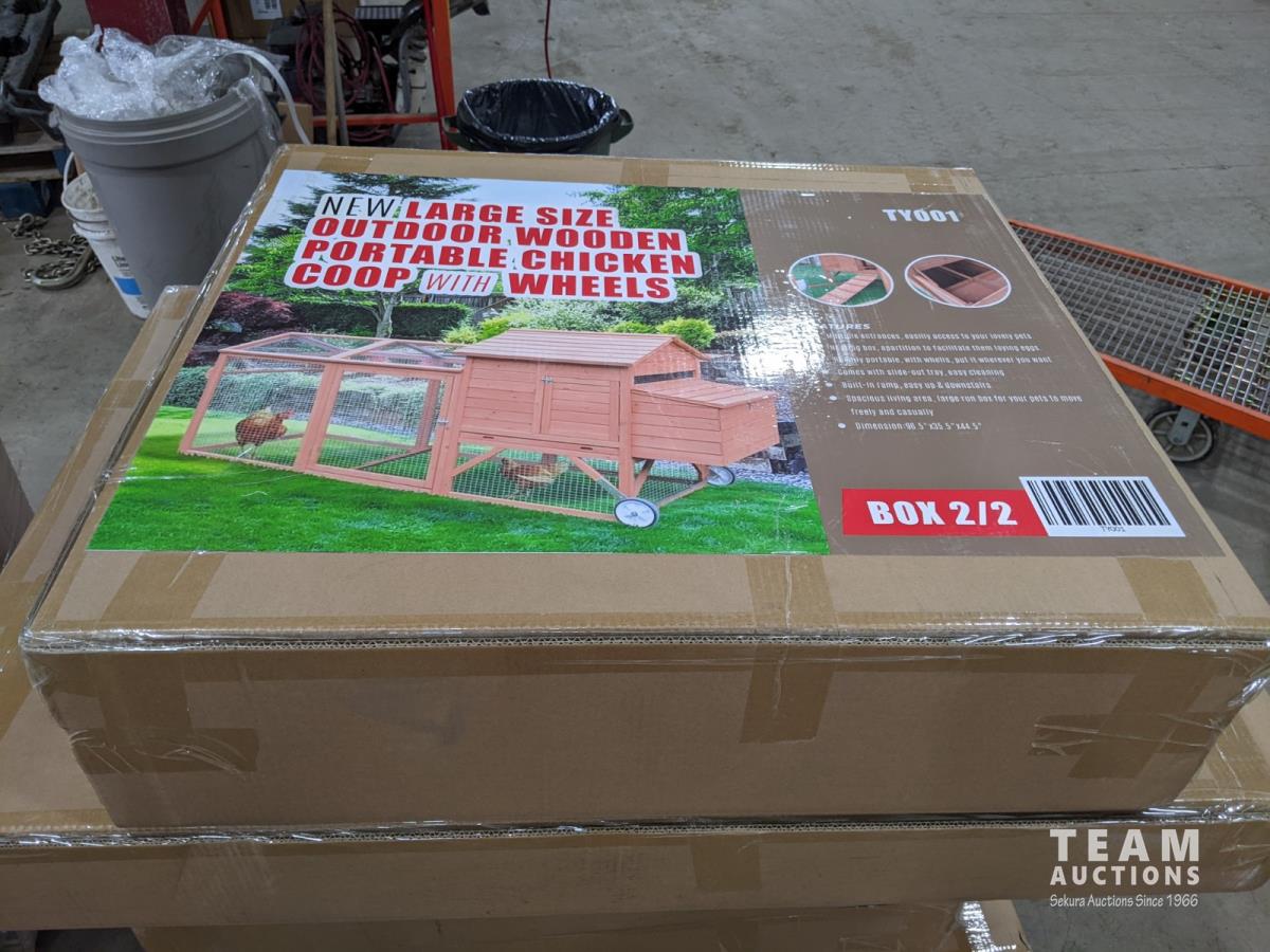 1860 Wooden Outdoor Portable Chicken Coop with Wheels (Unused)
