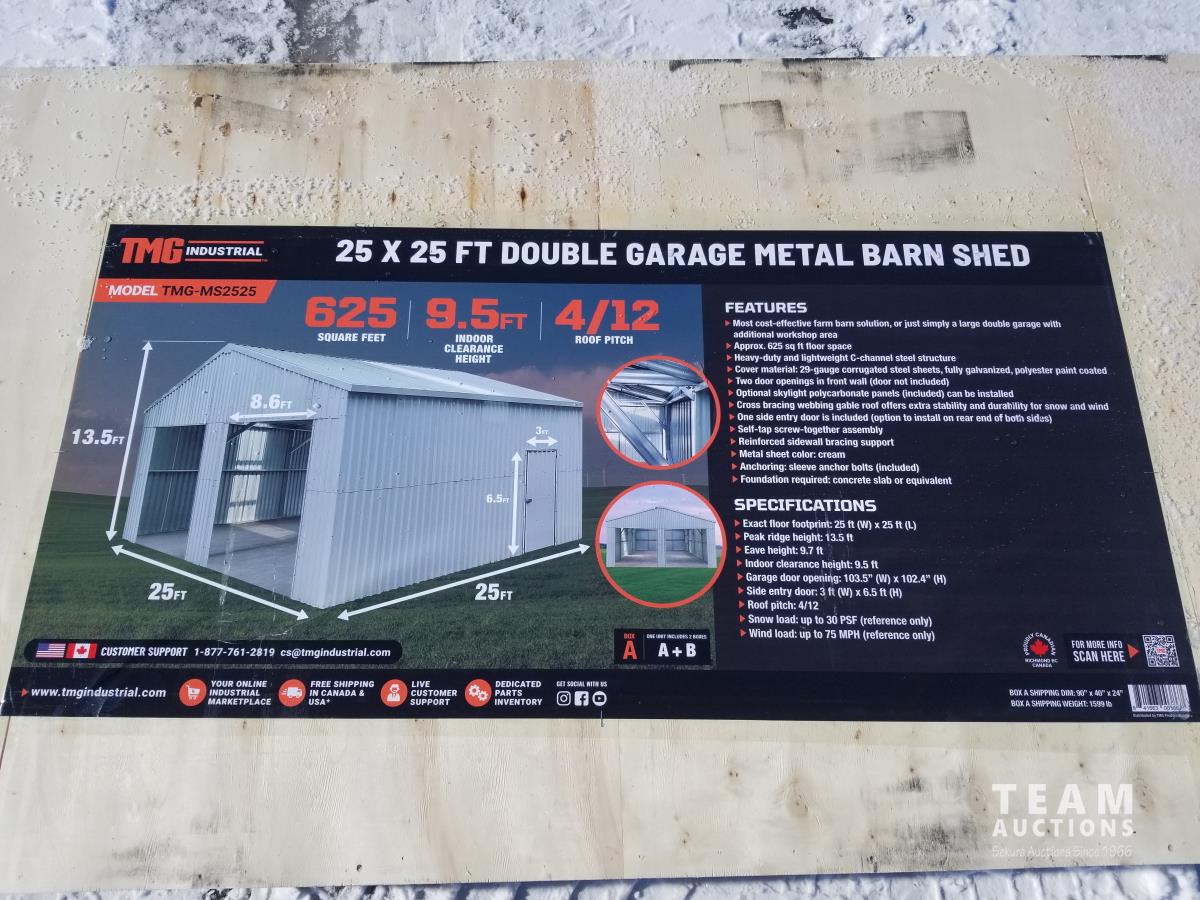 108 TMG Industrial TMG-MS2525 25 Ft X 25 Ft Double Garage Metal Barn Shed (Unused)