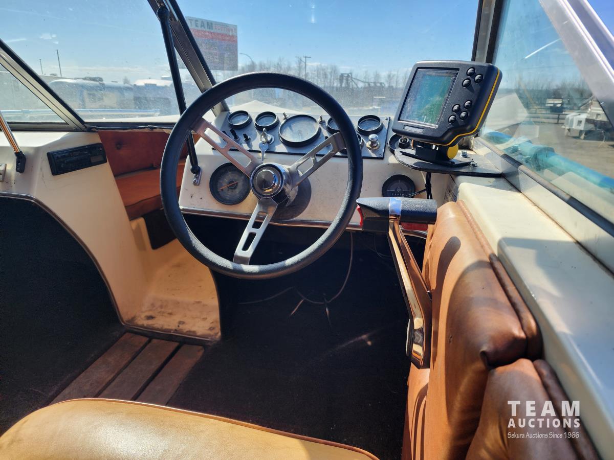 Inboard OMC stern drive, 3.8L engine, front winch, fish finder, cover, 205/70R14 tires