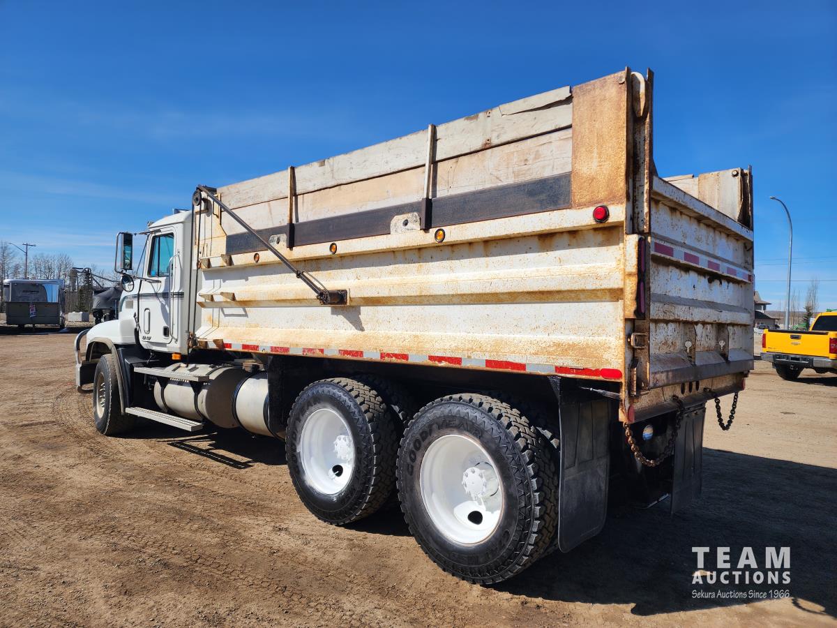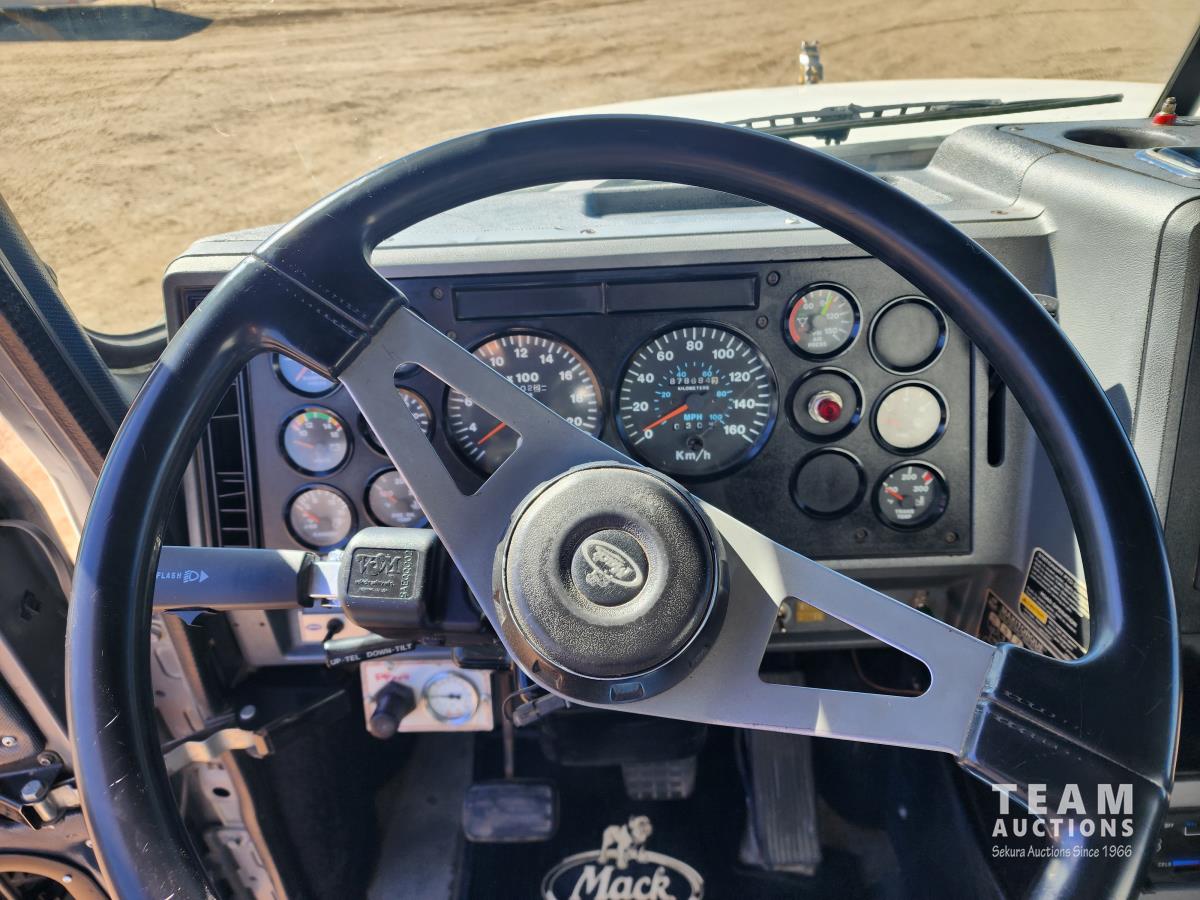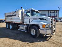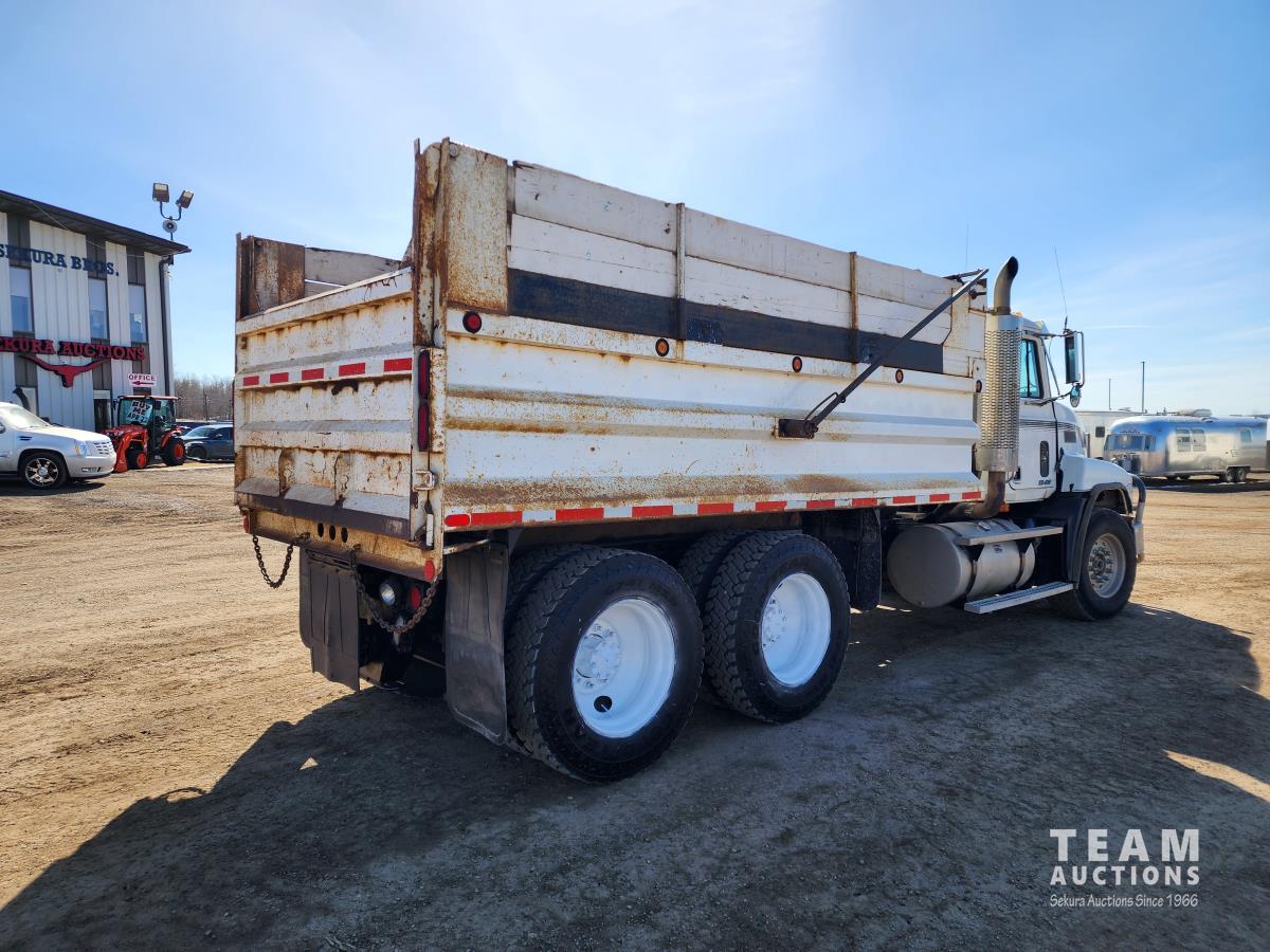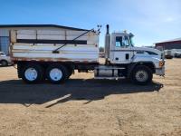 Mack E7-460 460 HP engine, engine brake, Eaton Fuller 18 speed manual transmission, Injectors changed and new injection pump installed November 2022, A/C, radio, moose bumper, 15 ft box, hoist, LoadShare front air assist suspension, 205 inch WB, pintle hitch, tall silage end gate, aluminum front wheels, 385/65R22.5 front tires, 11R22.5 rear tires
