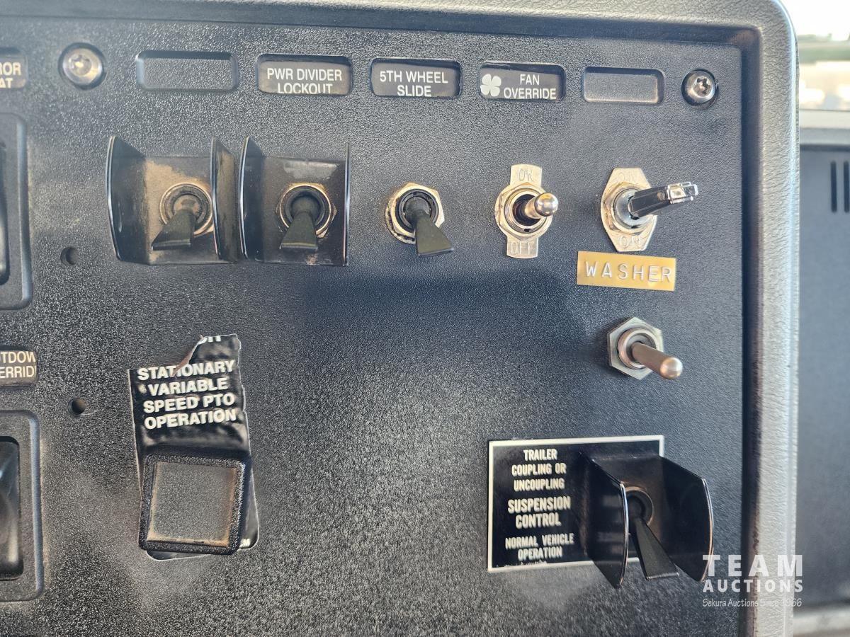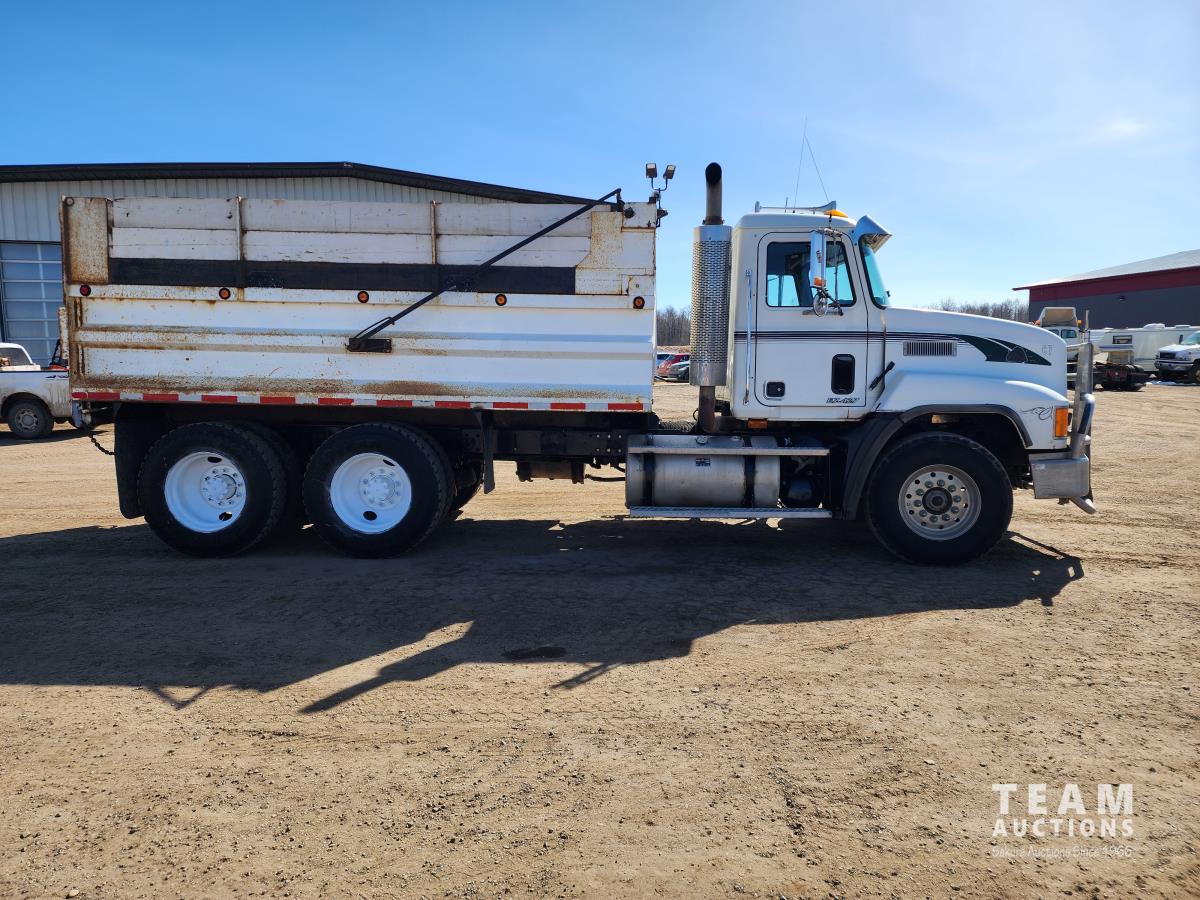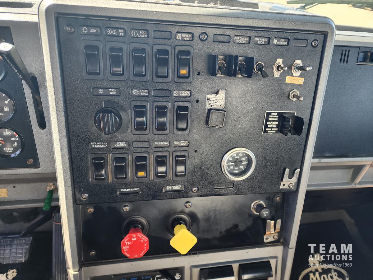 Mack E7-460 460 HP engine, engine brake, Eaton Fuller 18 speed manual transmission, Injectors changed and new injection pump installed November 2022, A/C, radio, moose bumper, 15 ft box, hoist, LoadShare front air assist suspension, 205 inch WB, pintle hitch, tall silage end gate, aluminum front wheels, 385/65R22.5 front tires, 11R22.5 rear tires