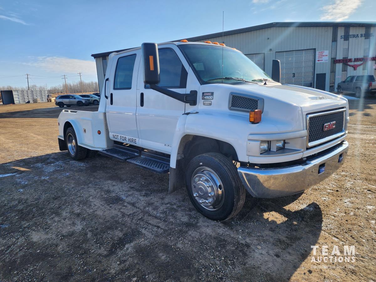 149 2003 GMC C4500 S/A Crew Cab Flat Deck Dually Truck