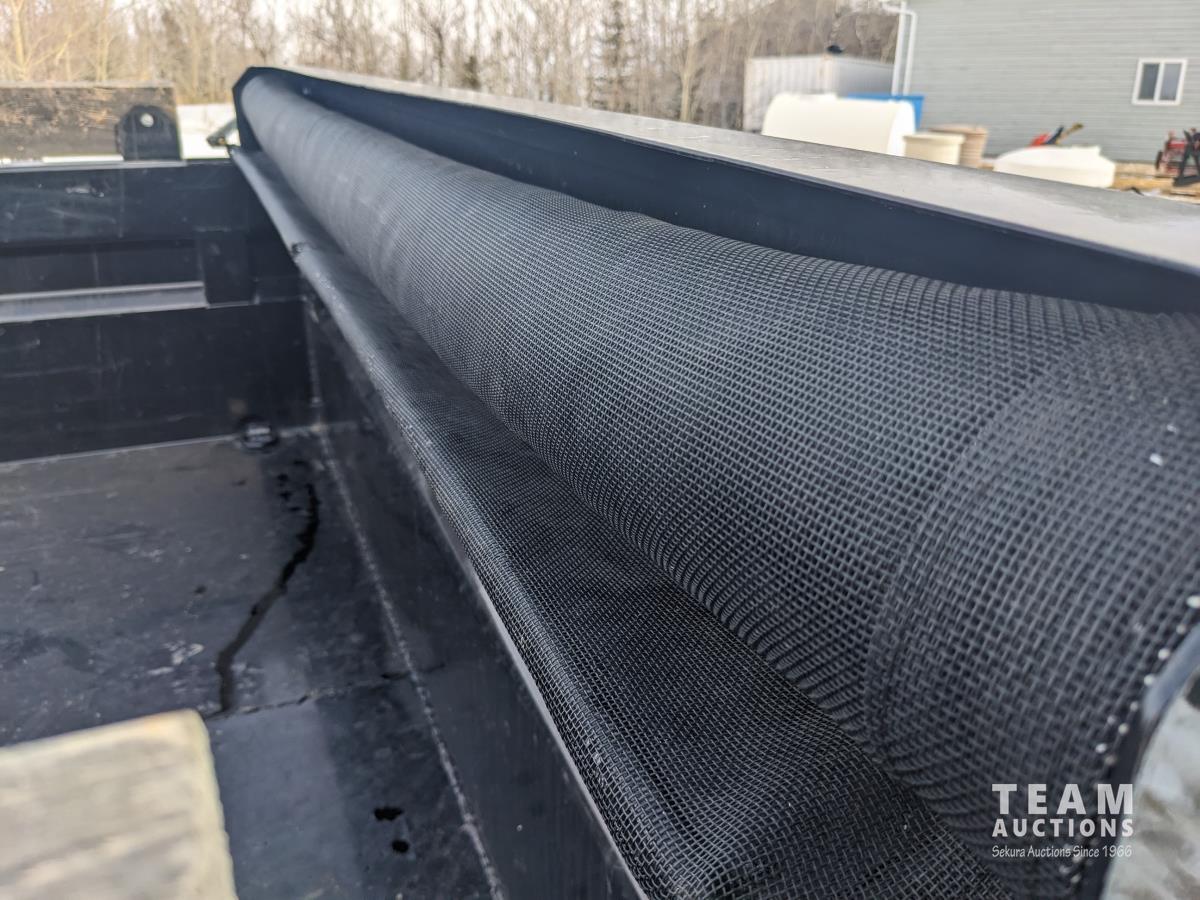 Ball hitch, roll tarp, electric brakes, spring suspension, 5,200 lb axles, 12V self contained hydraulic system with corded remote, 23/80R16 tires