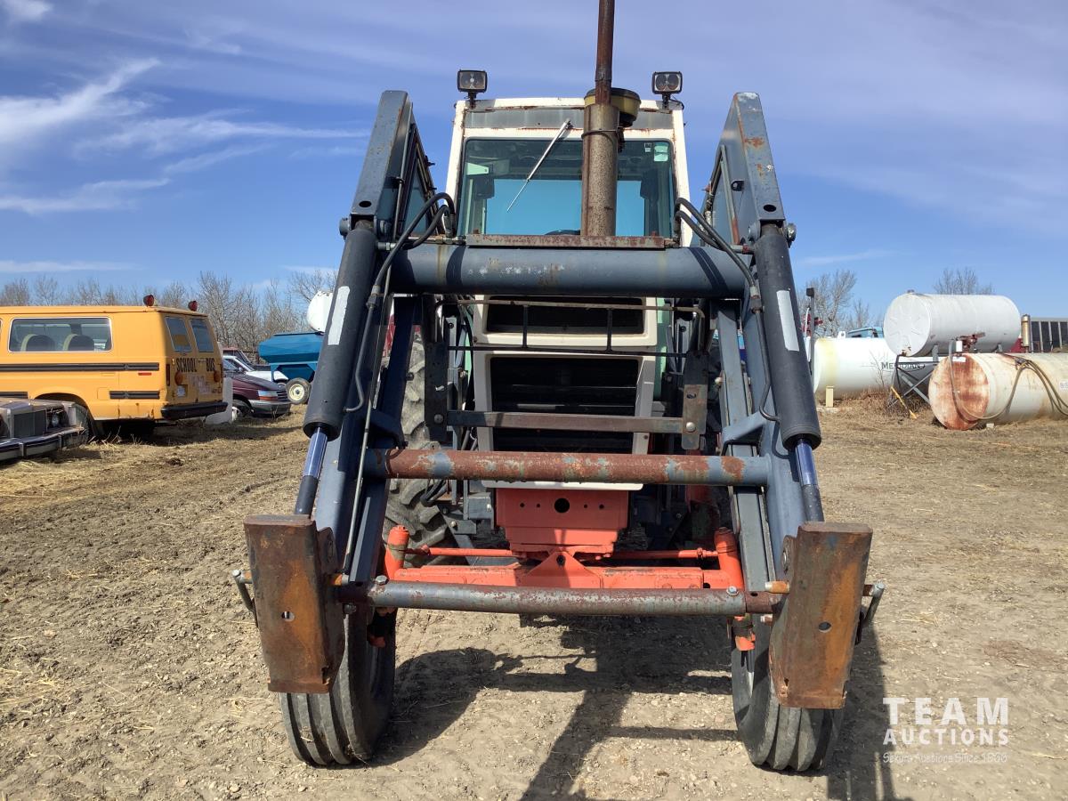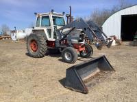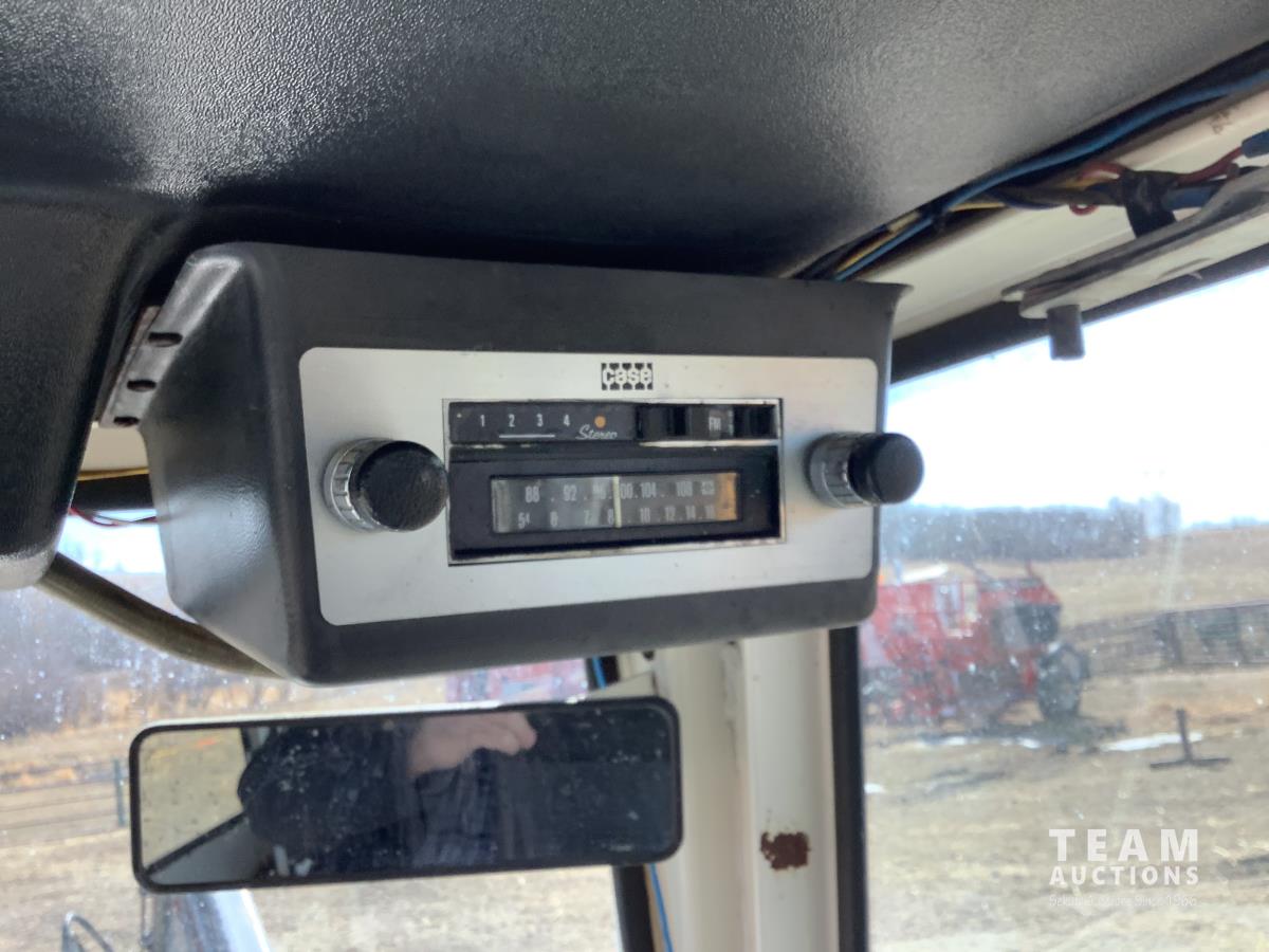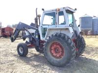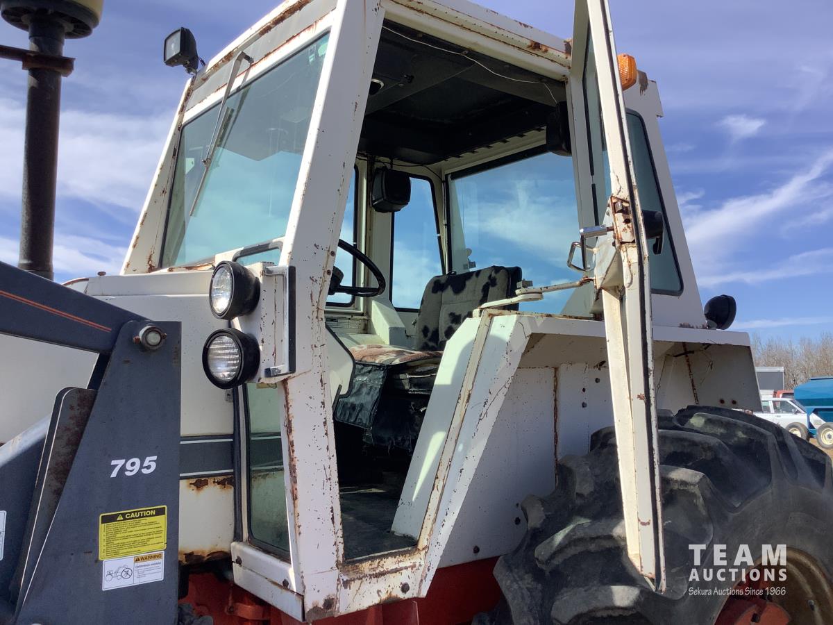 Allied 795 loader, Q/A, 84 inch bucket, Case 6.6 L engine, 8 spd standard transmission, cab, A/C, radio, heat, 540/1000 PTO, 2 rear hydraulic outlets, rear wheel weights, 10.00X16 front tires, 18.4-34 rear tires