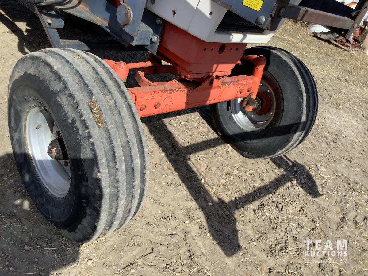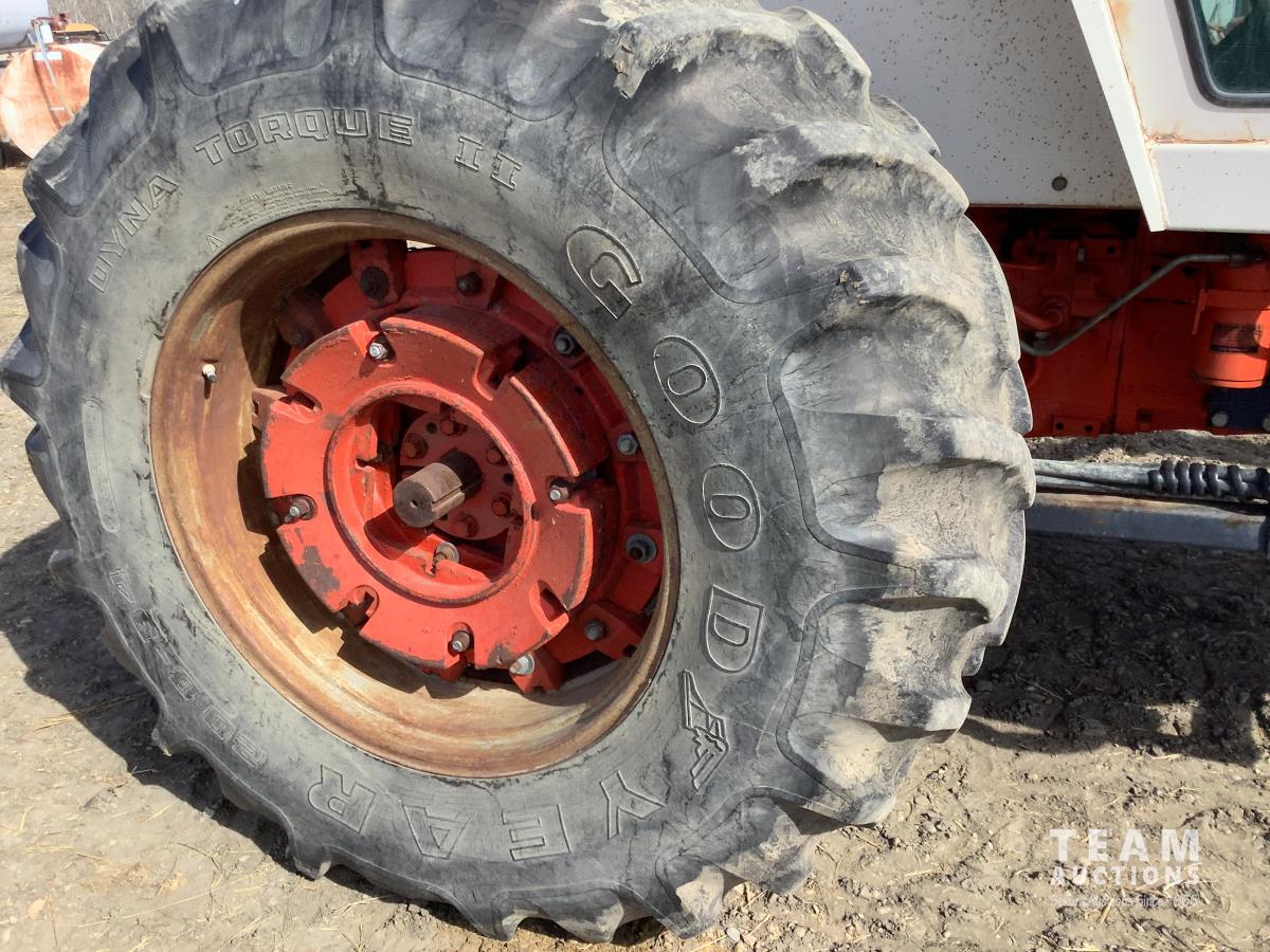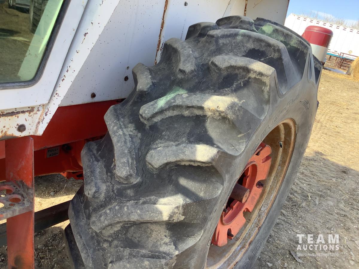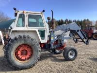 Allied 795 loader, Q/A, 84 inch bucket, Case 6.6 L engine, 8 spd standard transmission, cab, A/C, radio, heat, 540/1000 PTO, 2 rear hydraulic outlets, rear wheel weights, 10.00X16 front tires, 18.4-34 rear tires