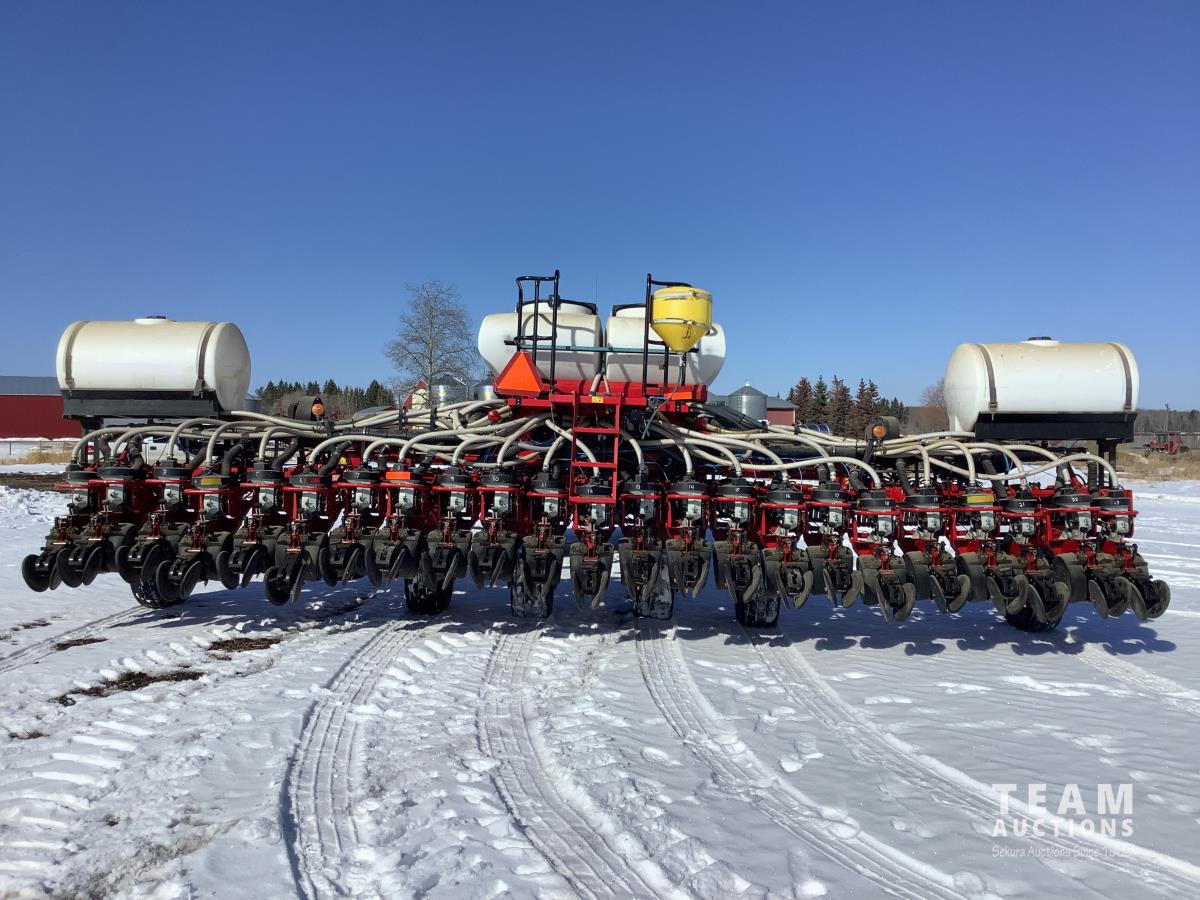 Central fill 90 bushel grain tank, Alpine liquid fertilizer kit with twin 200 gallon holding tanks, comes with Canola/soybean/corn blades, can be set to 23 row planting at 15 inch spacing or 12 row planting at 30 inch spacing, hydraulic fold, heavy duty down pressure springs on the row unit