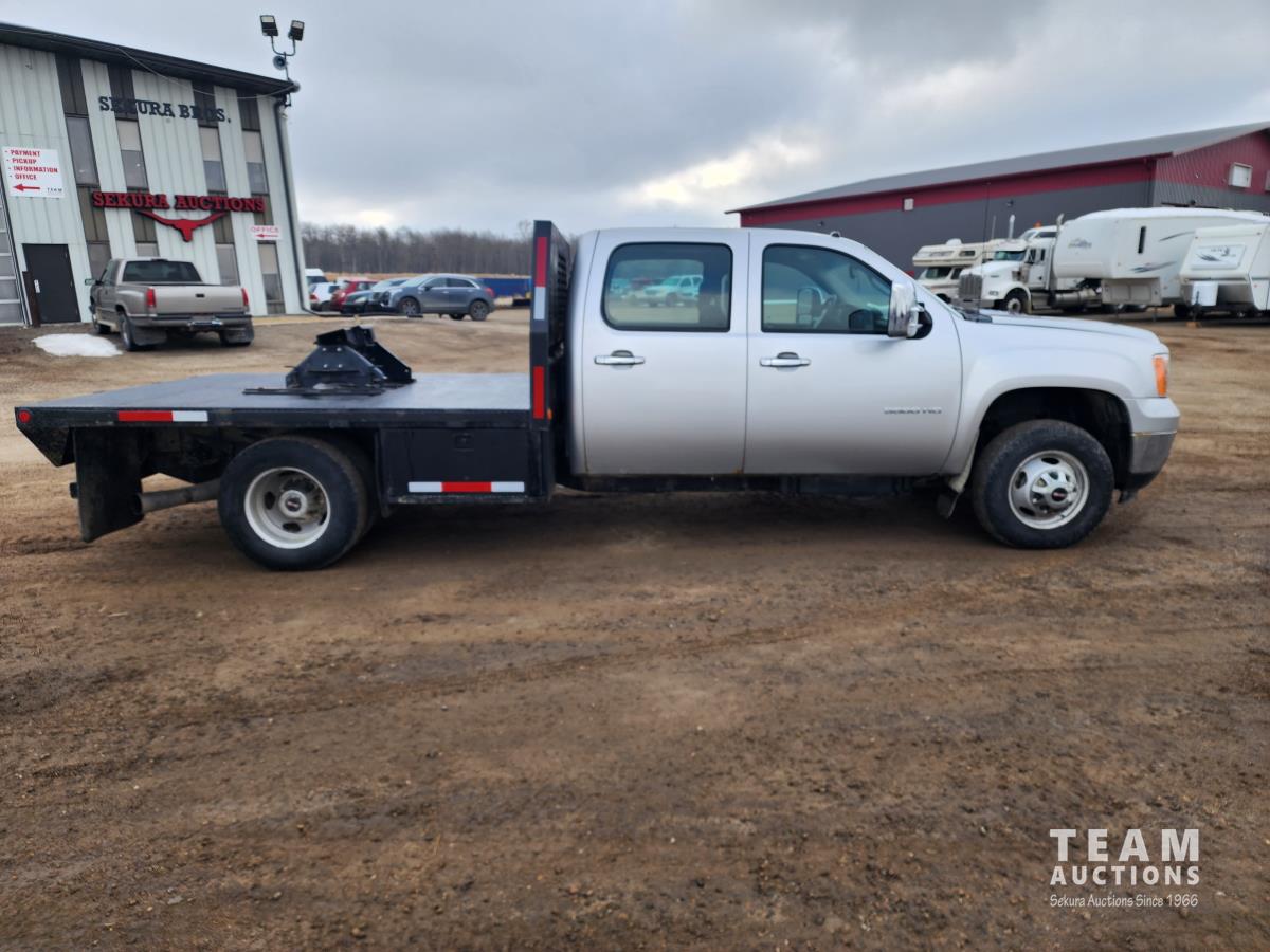 388 2014 GMC 3500 4X4 Crew Cab Flat Deck Dually Truck