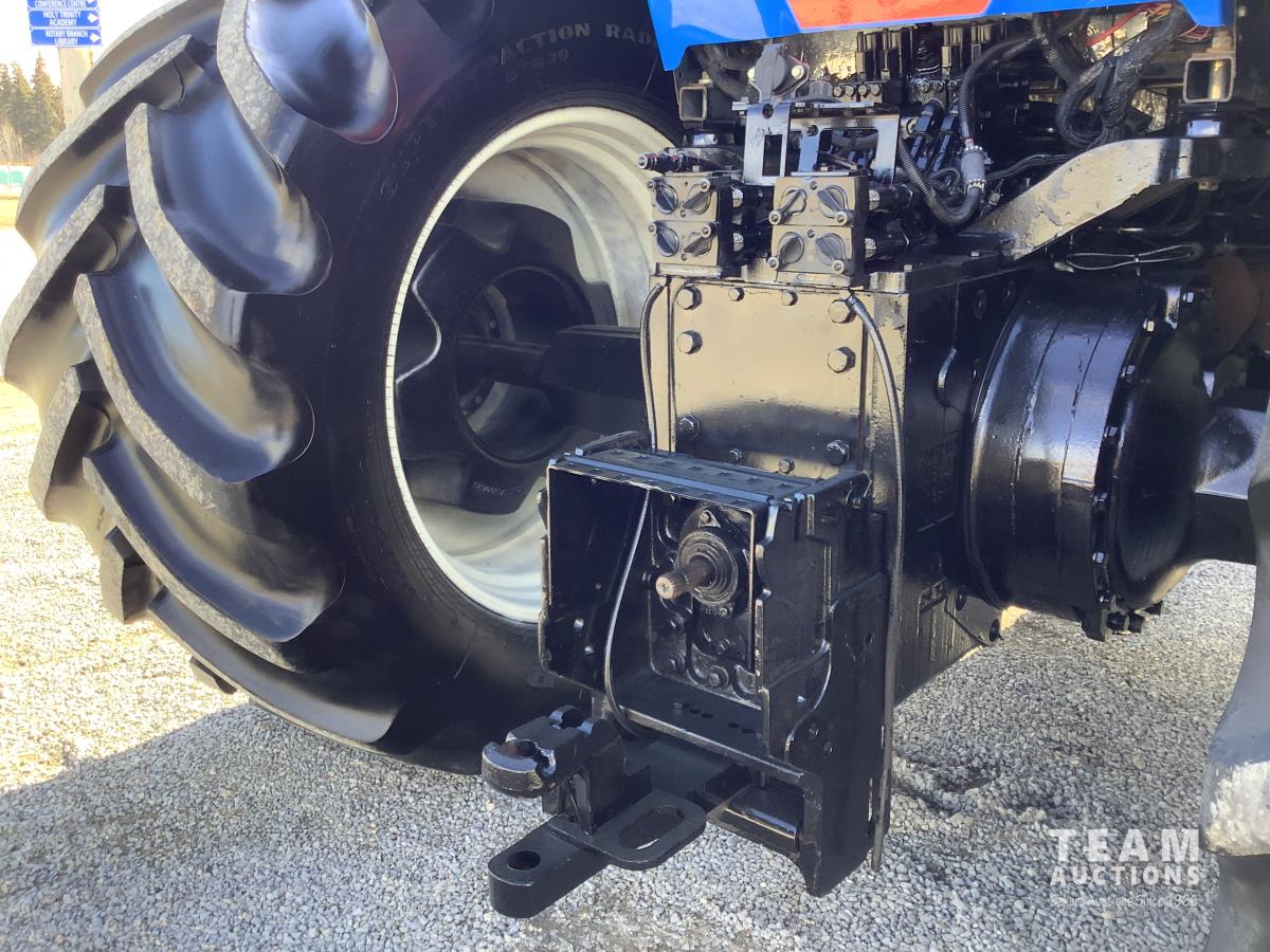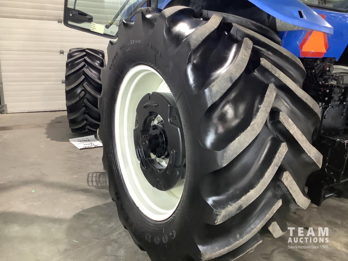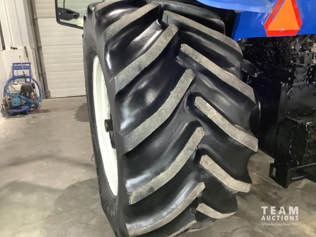 Tractor starts and drives real well. Local NH dealer just did new front wheel seals, new electric component on the diesel pump costing $9,000. This tractor has been parked past 5 years. Most of its life it was only used on a big Heston square hay baler. Has a crack in the roof cap as seen, one light is broken out. We have the large 1000 PTO shaft on hand.