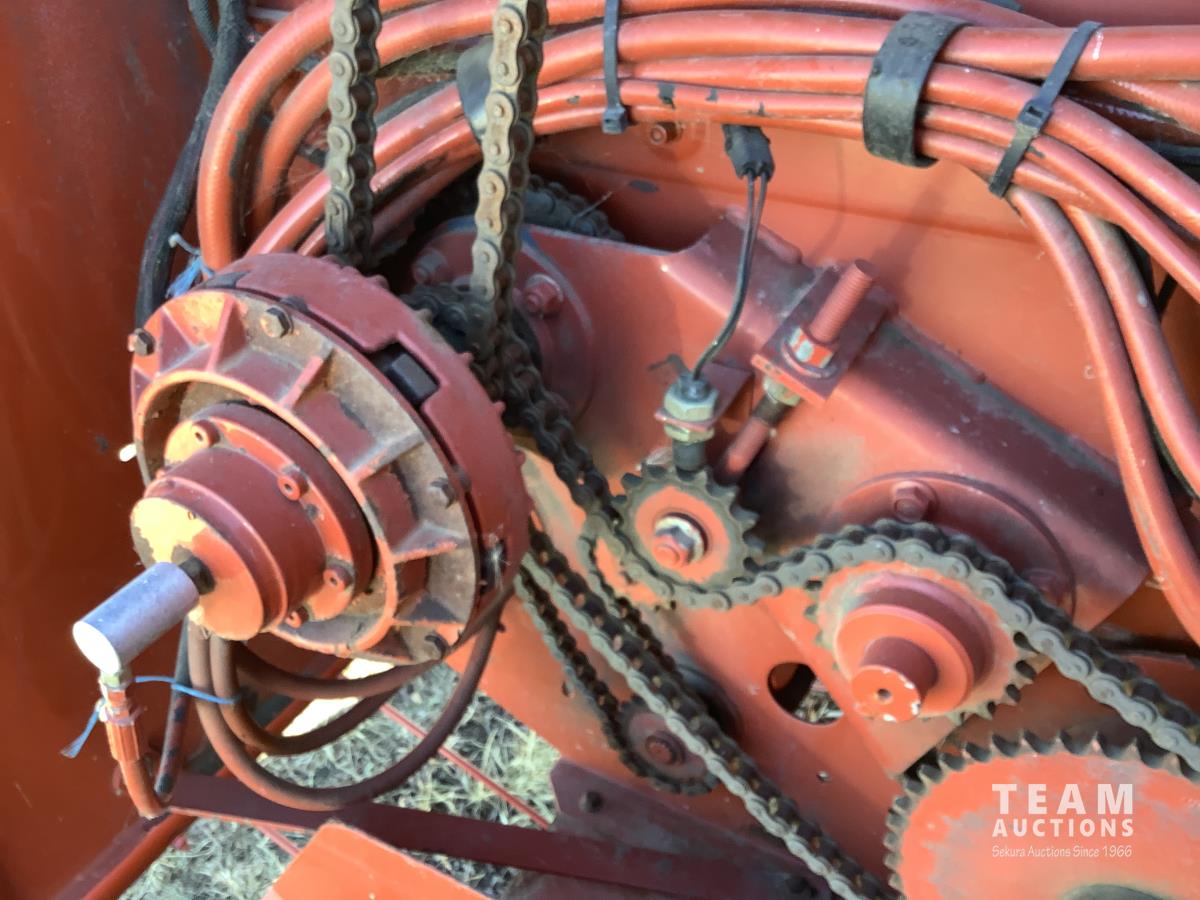 1000 PTO, hydraulic lift, monitor, kicker, twin pickup gauge wheels, auto tie system