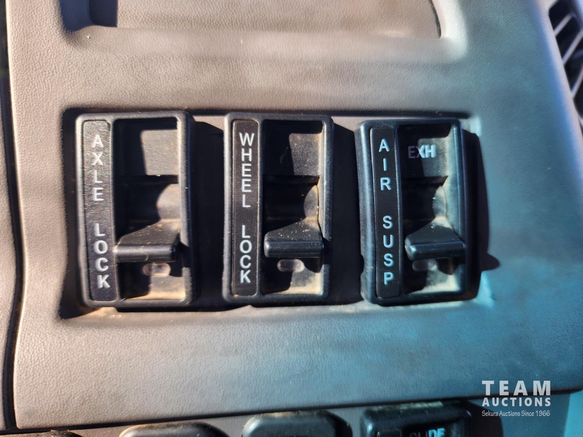 Mercedes 460 12.0 L engine, engine brake, Eaton Fuller 18 speed manual transmission, A/C, cruise control, radio, beacons, single line wet kit for end dump, Airliner air ride suspension, 48,000 lb rear axles, 205 inch WB, Rockwell diffs with full lockers, all aluminum wheels, 11R22.5 tires