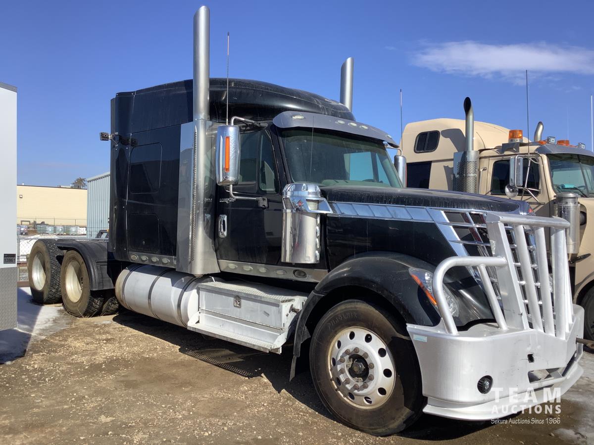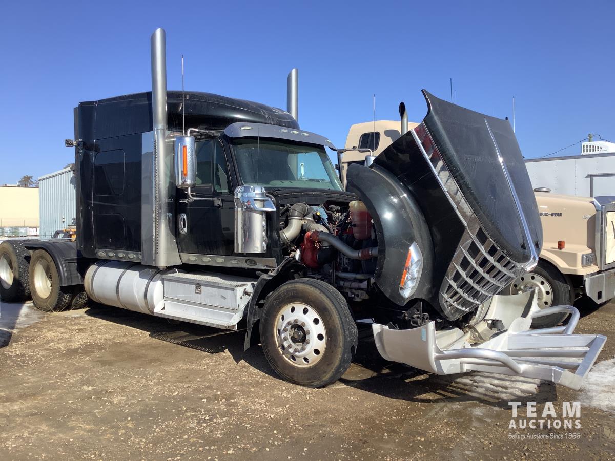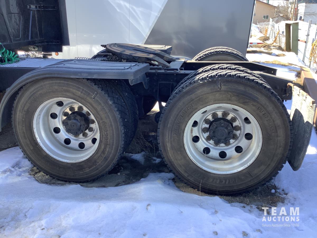 Cummins ISX 500 HP engine, Webasto engine heater, Eaton Fuller 18 speed transmission, A/C, leather interior, air ride seats, moose bumper, air suspension, 13,200 lb front axle, 46,000 lb rear axles, full lockers, Eagle interior package, all aluminum wheels, 11R24.5 rear tires