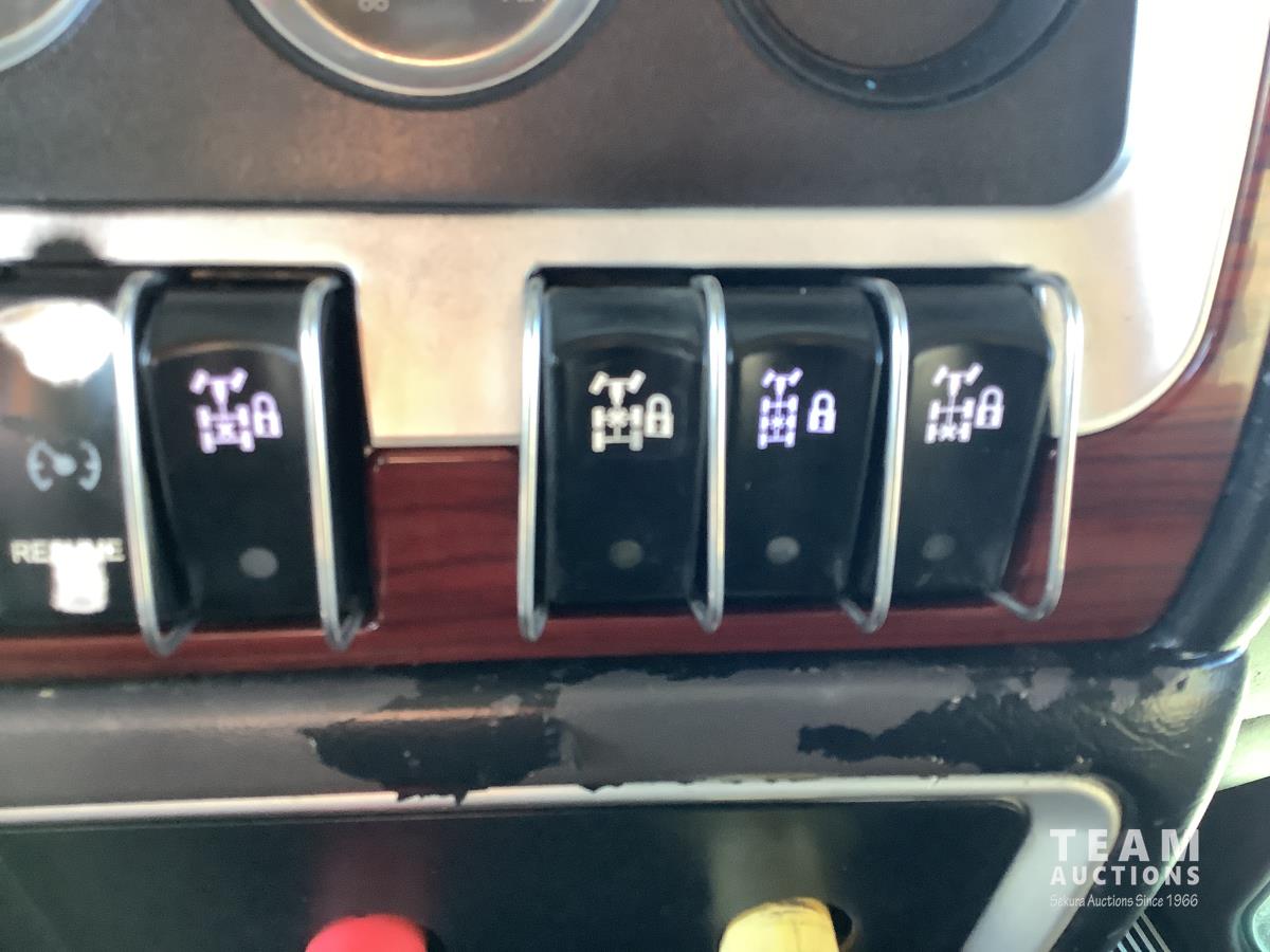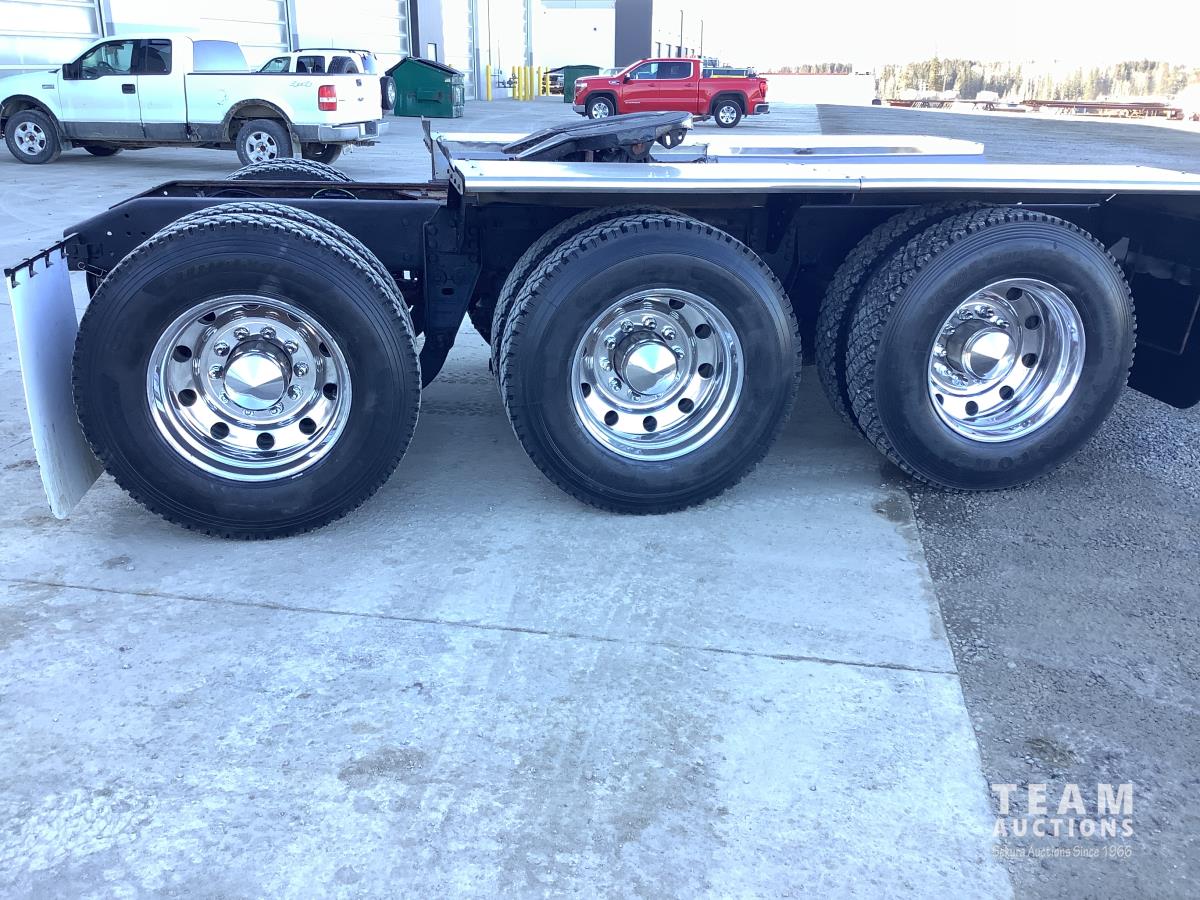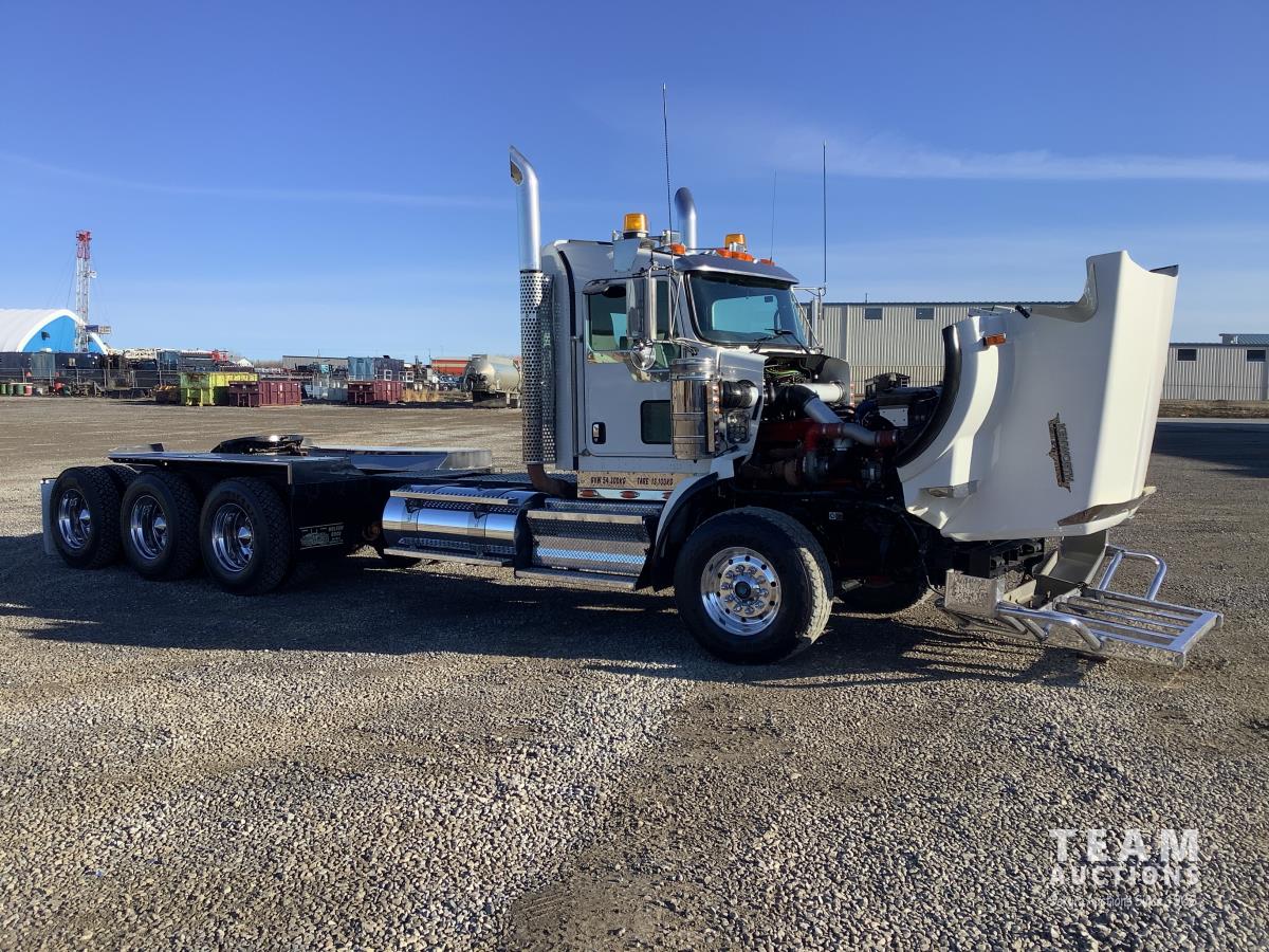 Cummins ISX 525 HP engine, engine brake, positive air shutoff, emissions deleted, Eaton Fuller RTLO18918B 18 speed manual transmission, A/C, radio, CB radio, moose bumper, beacons, Neway air ride suspension, 20,000 lb front axle, full lockers, 270 inch WB, Dana Spicer T69-170HP58K rears, 280 inch from back of cab to end of frame, all aluminum wheels, 385/65R22.5 front tires, 11R24.5 rear tires