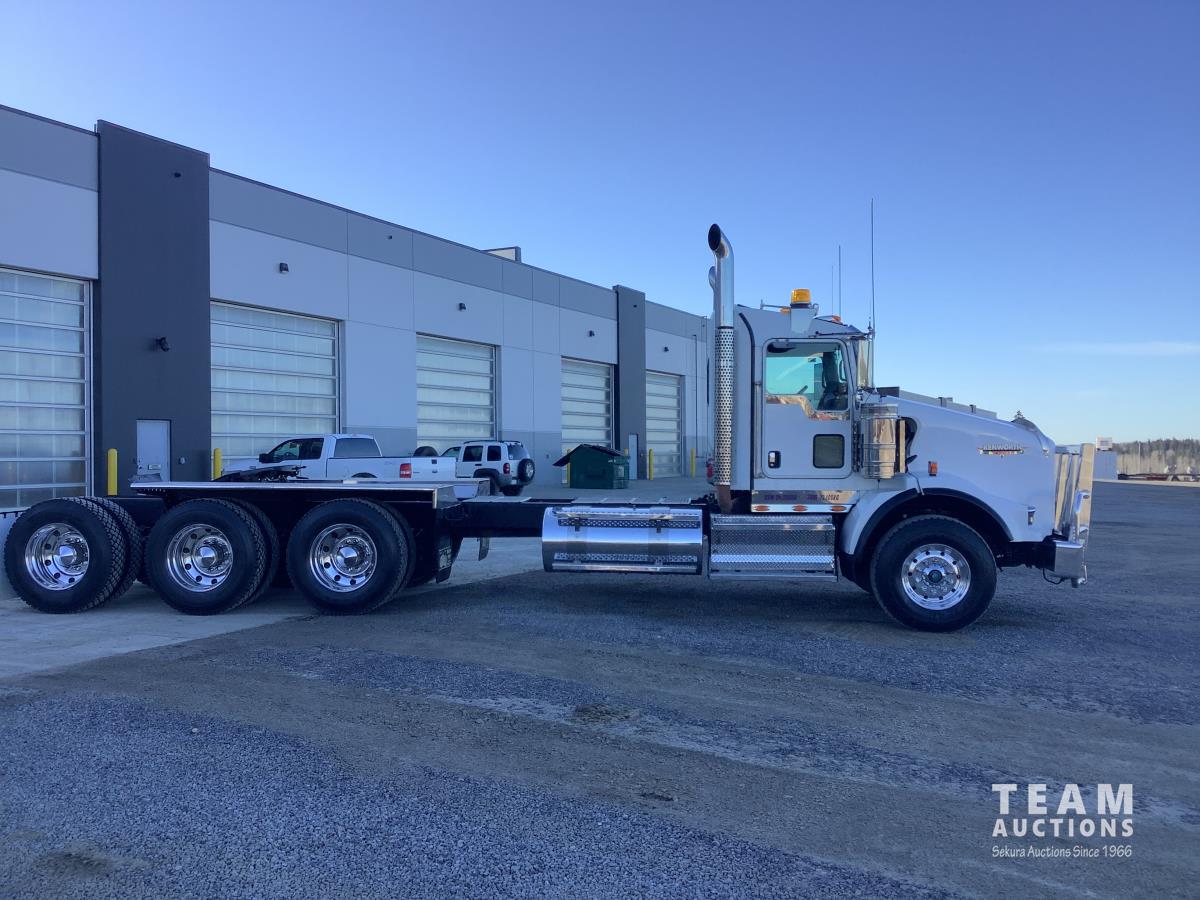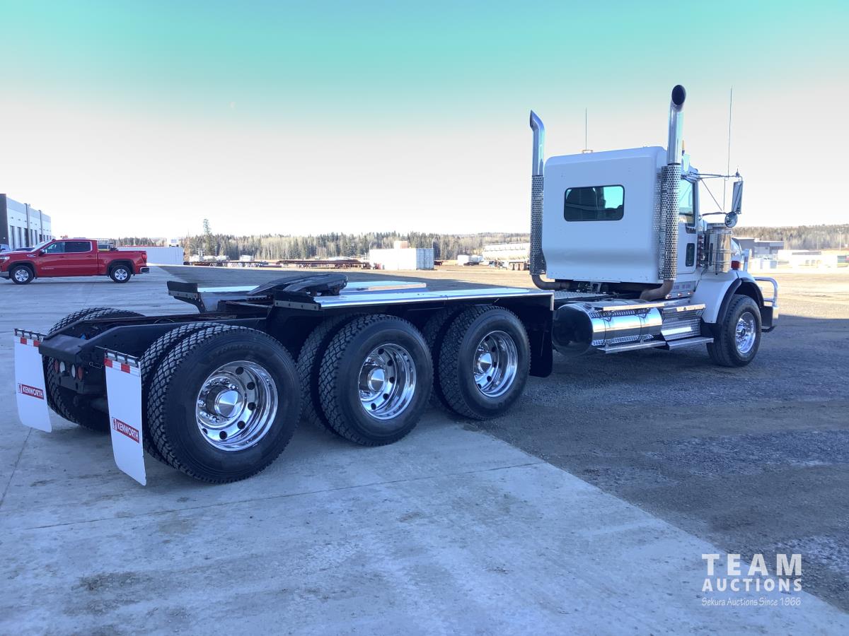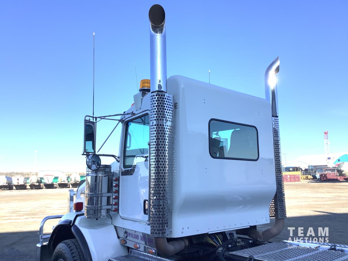Cummins ISX 525 HP engine, engine brake, positive air shutoff, emissions deleted, Eaton Fuller RTLO18918B 18 speed manual transmission, A/C, radio, CB radio, moose bumper, beacons, Neway air ride suspension, 20,000 lb front axle, full lockers, 270 inch WB, Dana Spicer T69-170HP58K rears, 280 inch from back of cab to end of frame, all aluminum wheels, 385/65R22.5 front tires, 11R24.5 rear tires