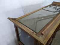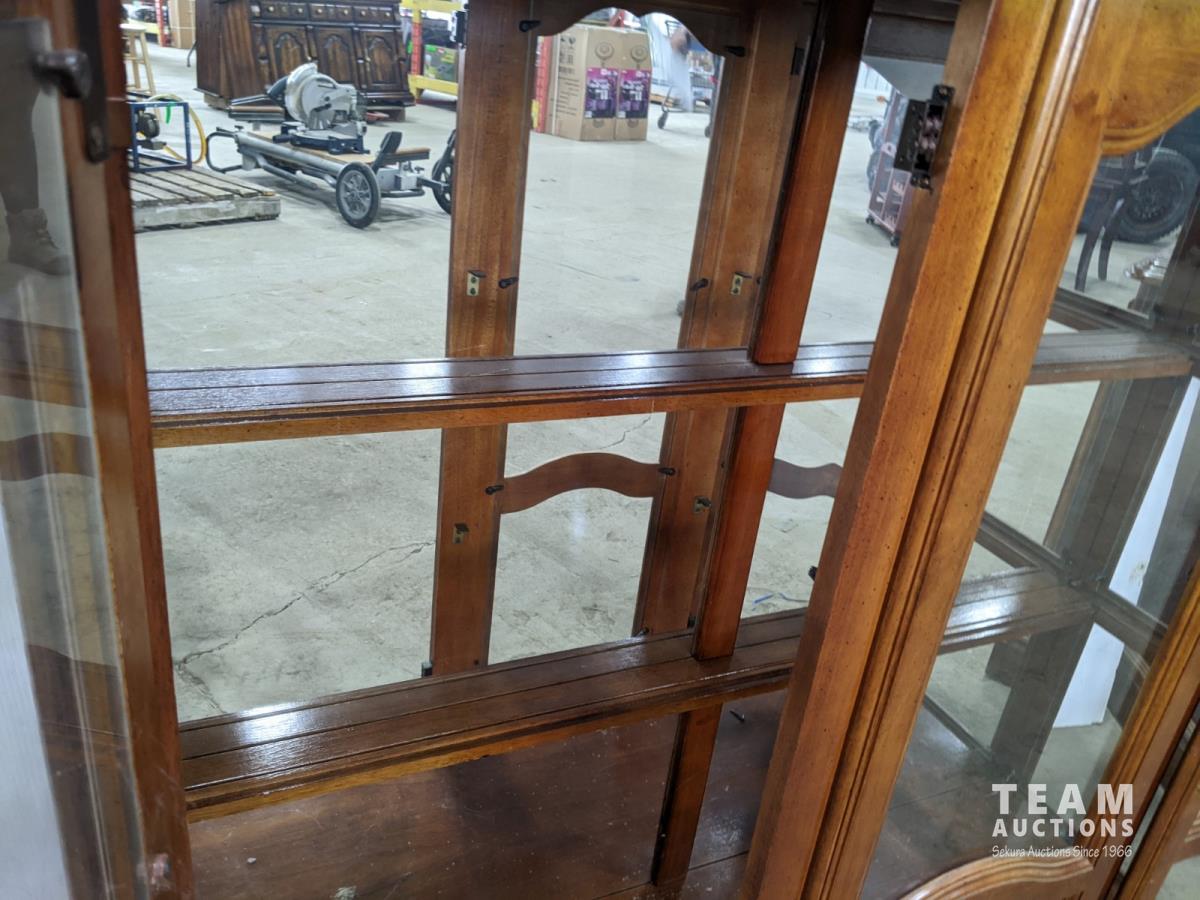 Glass shelves, bottom 51 inch w x 17 inch d x 31 inch h, top 49 inch w x 16 inch d x 48 inch h